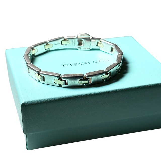 vintage TIFFANY silver × k18 gold flat link chain bracelet