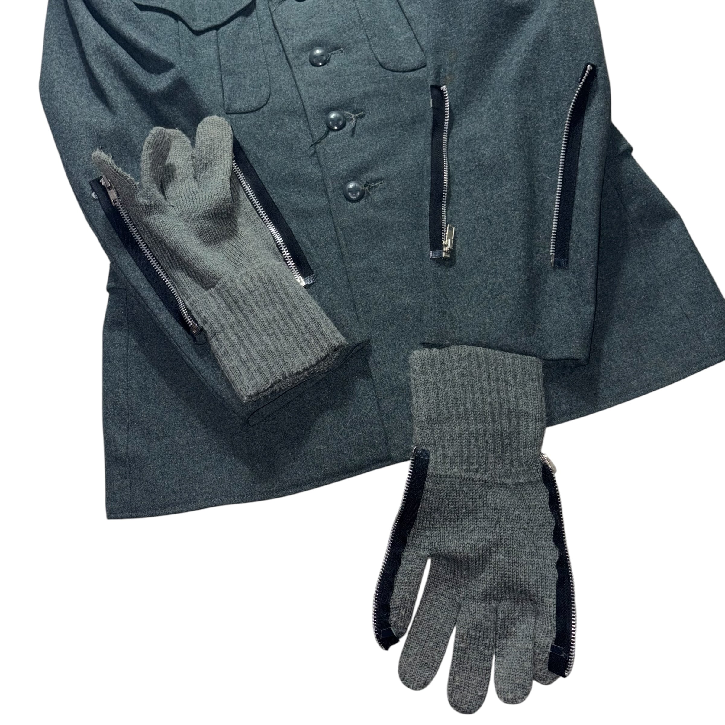 装飾や変形に収斂するのが常の古着リメイクに剥き出しの道具性を持ち込んだunusualな一着です。