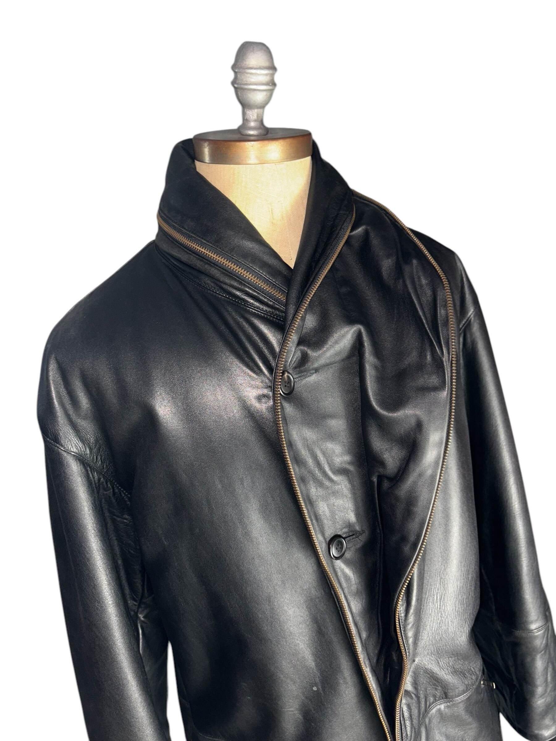 archive 1990’s ISSEY MIYAKE MEN zip design shawl collar leather coat
