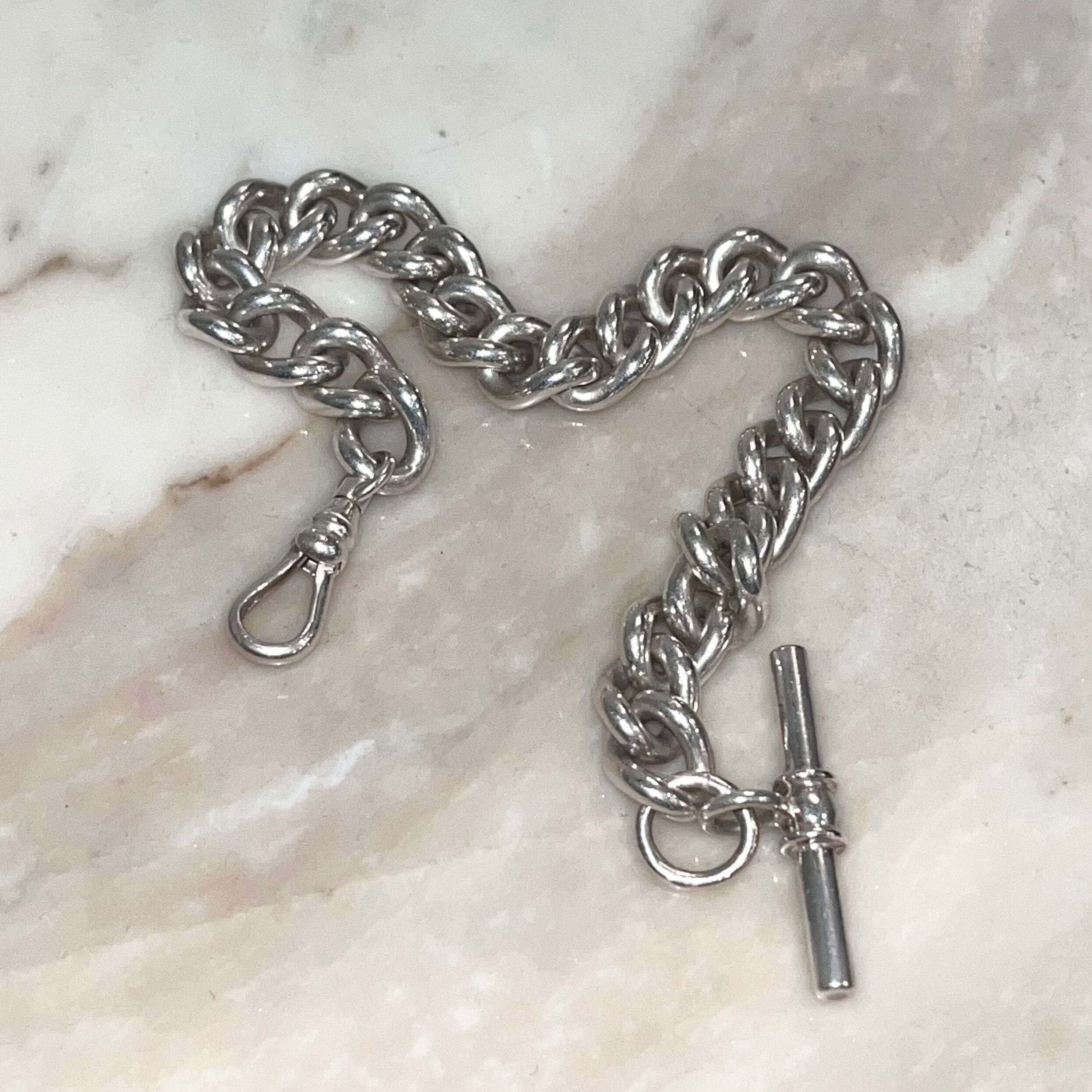 antique heavy gauge silver bracelet with T bar