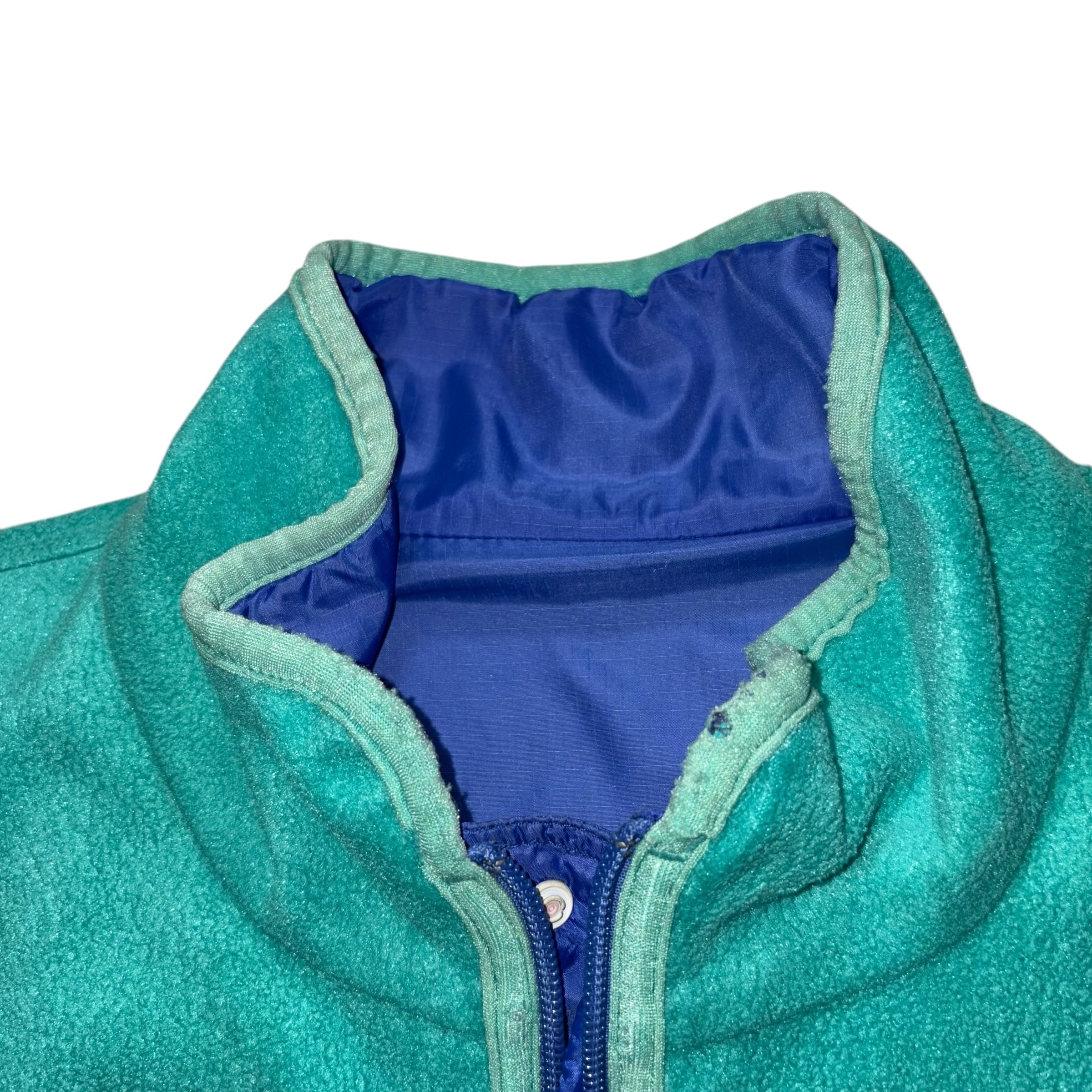 condition:B(全体使用感、フリース面ネックトリム擦り切れと胸ジップ引き手テープ欠損、ナイロン面トップボタンスナップ緩い、腹部染みあり)
