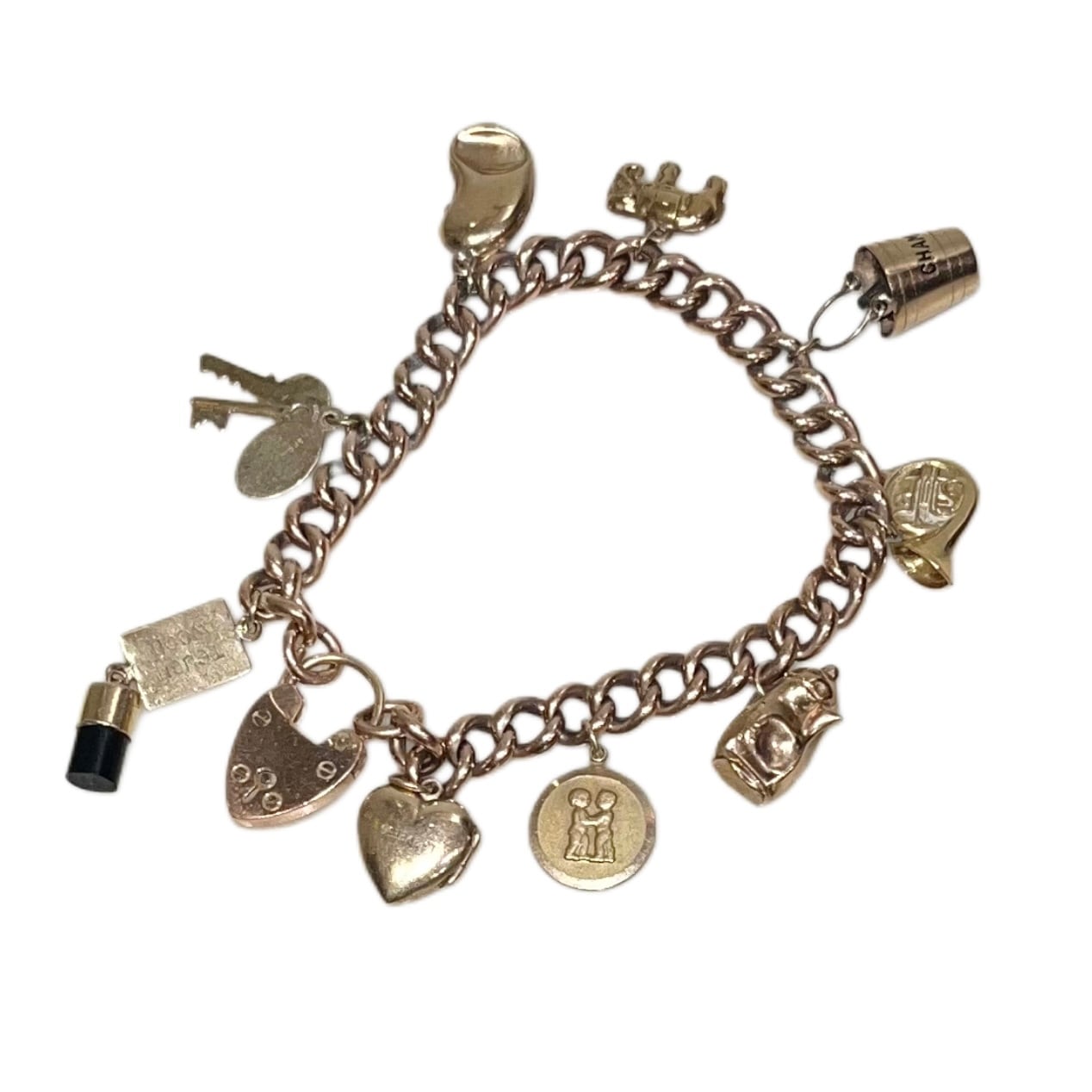 vintage c1960 9ct gold chain bracelet with 9 charms