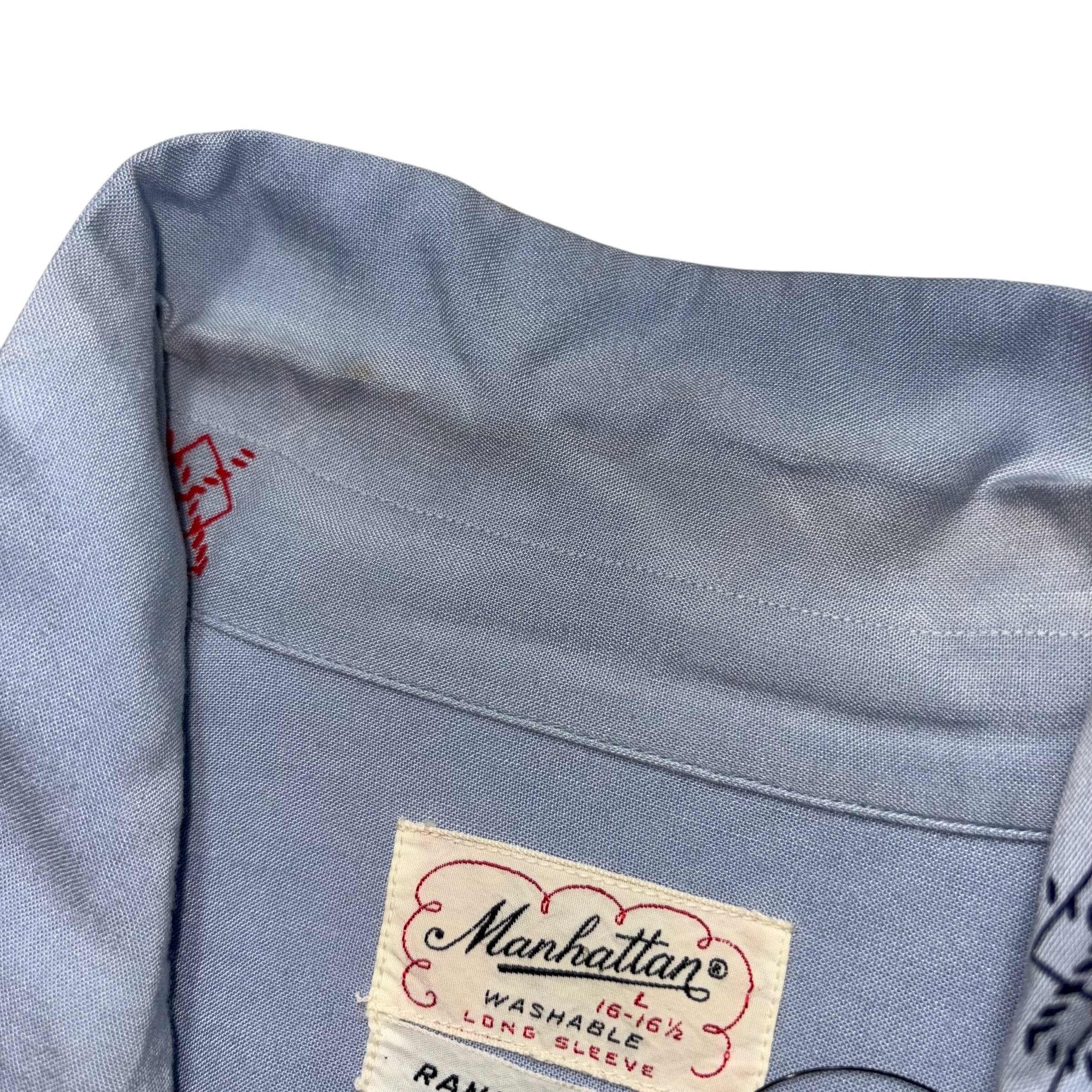 サックスブルーのレーヨンシャツ。
