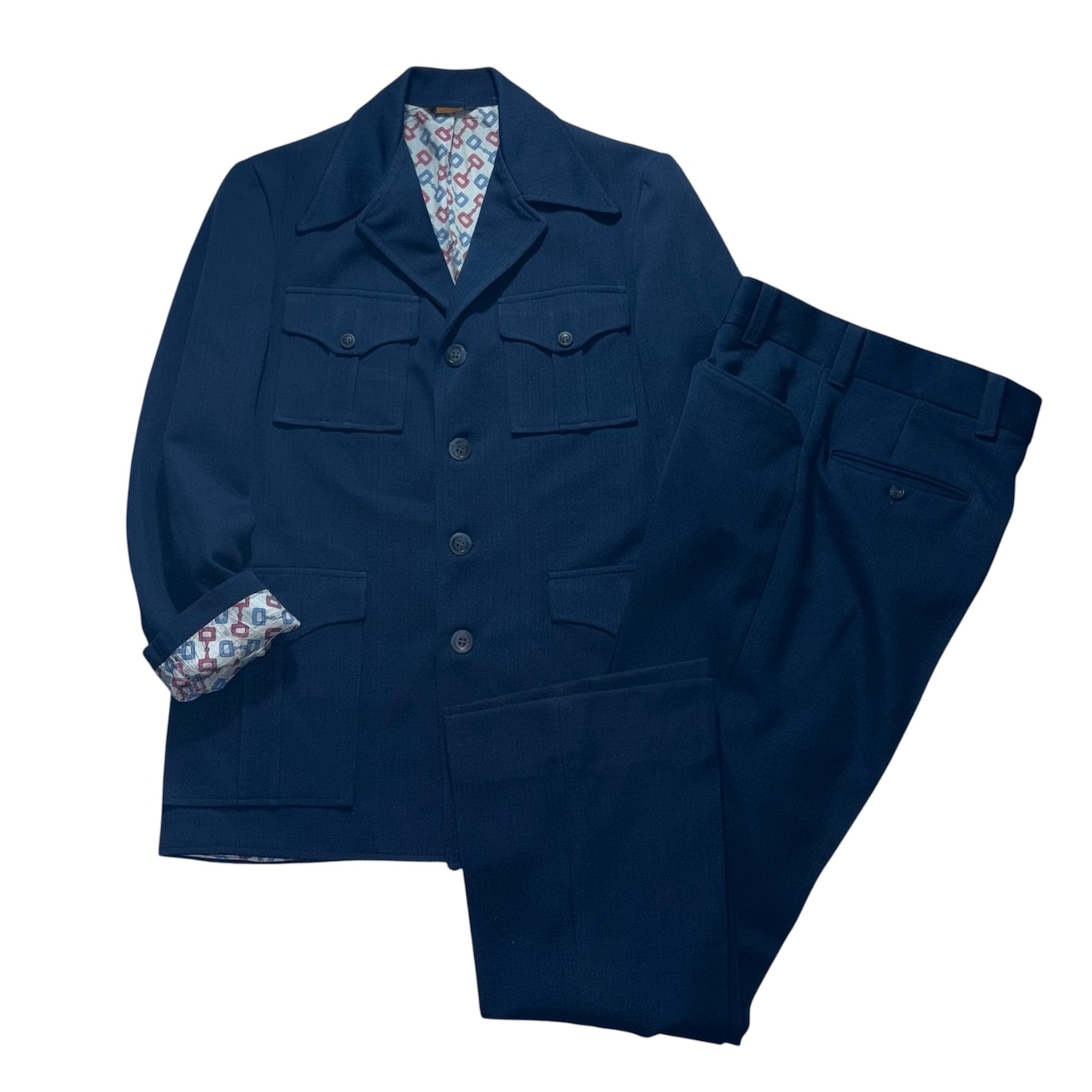 vintage 1970’s navy polyester set-up with Bit lining