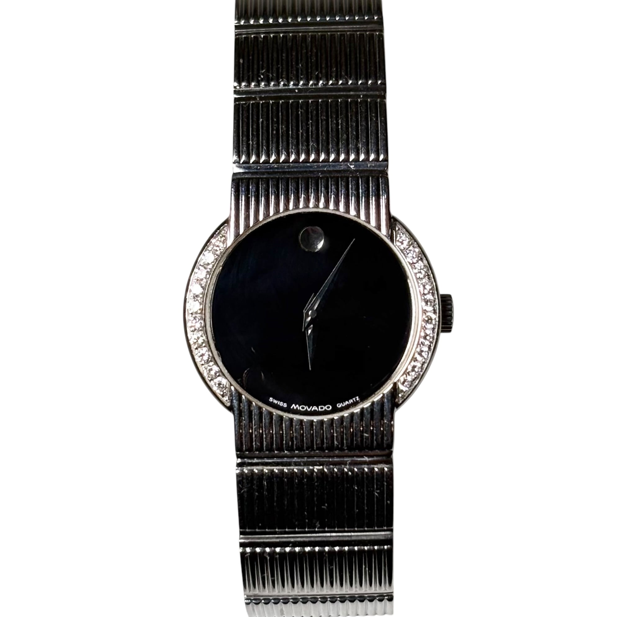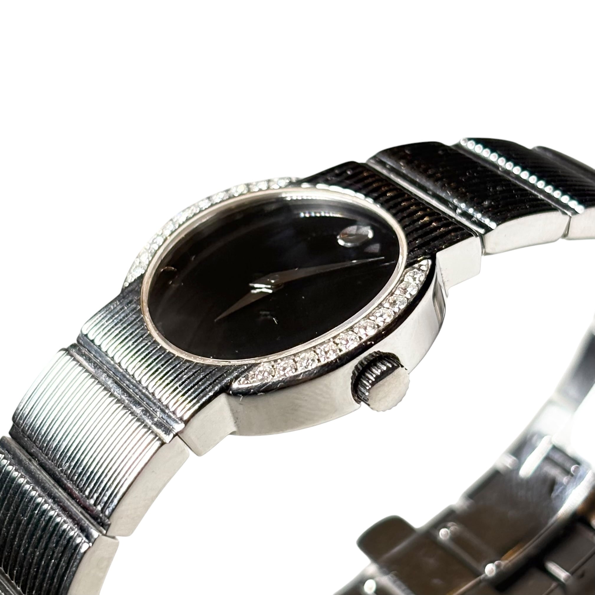 MOVADO black dial Diamond bezel quartz watch “Museum Concerto”