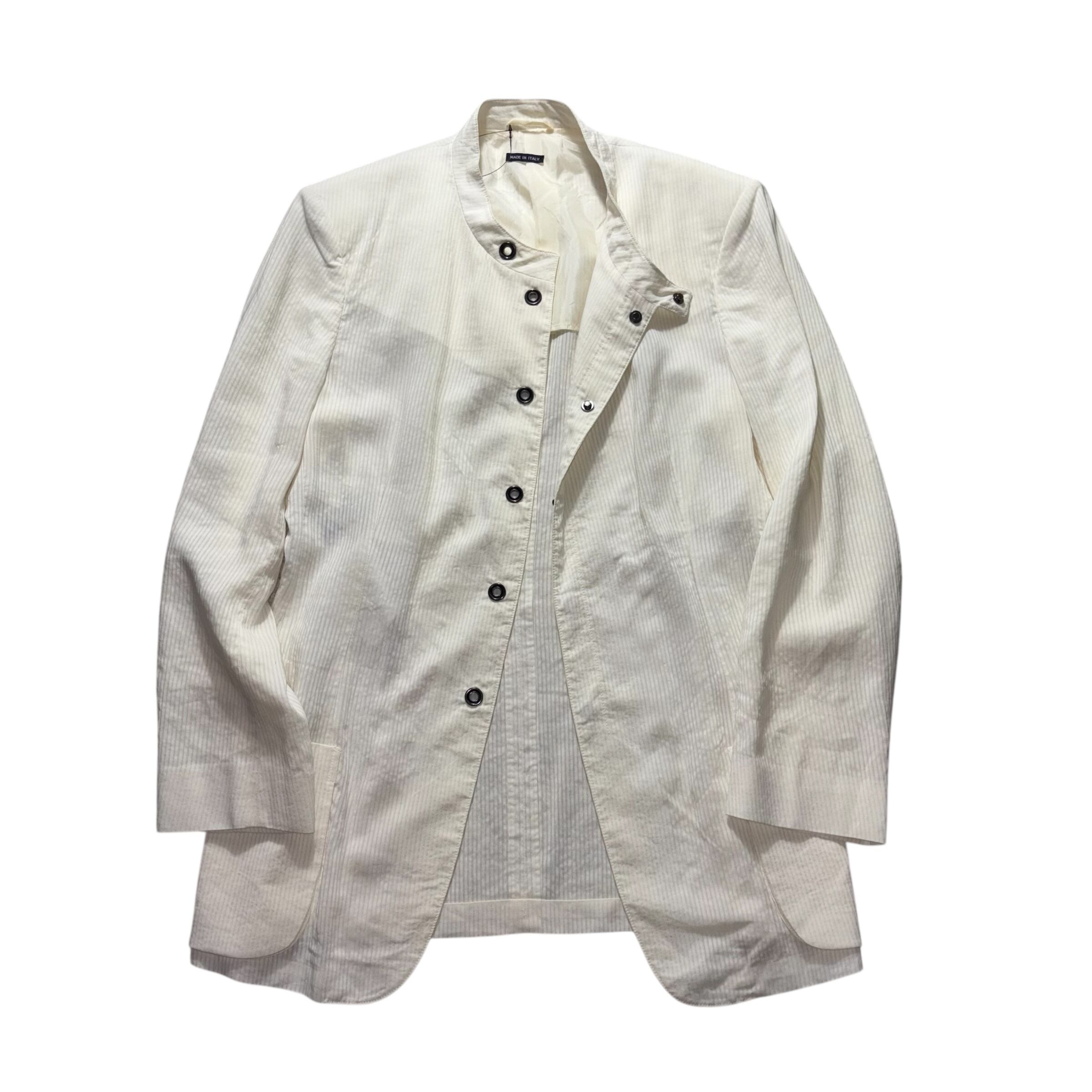 GIORGIO ARMANI white pique no collar jacket