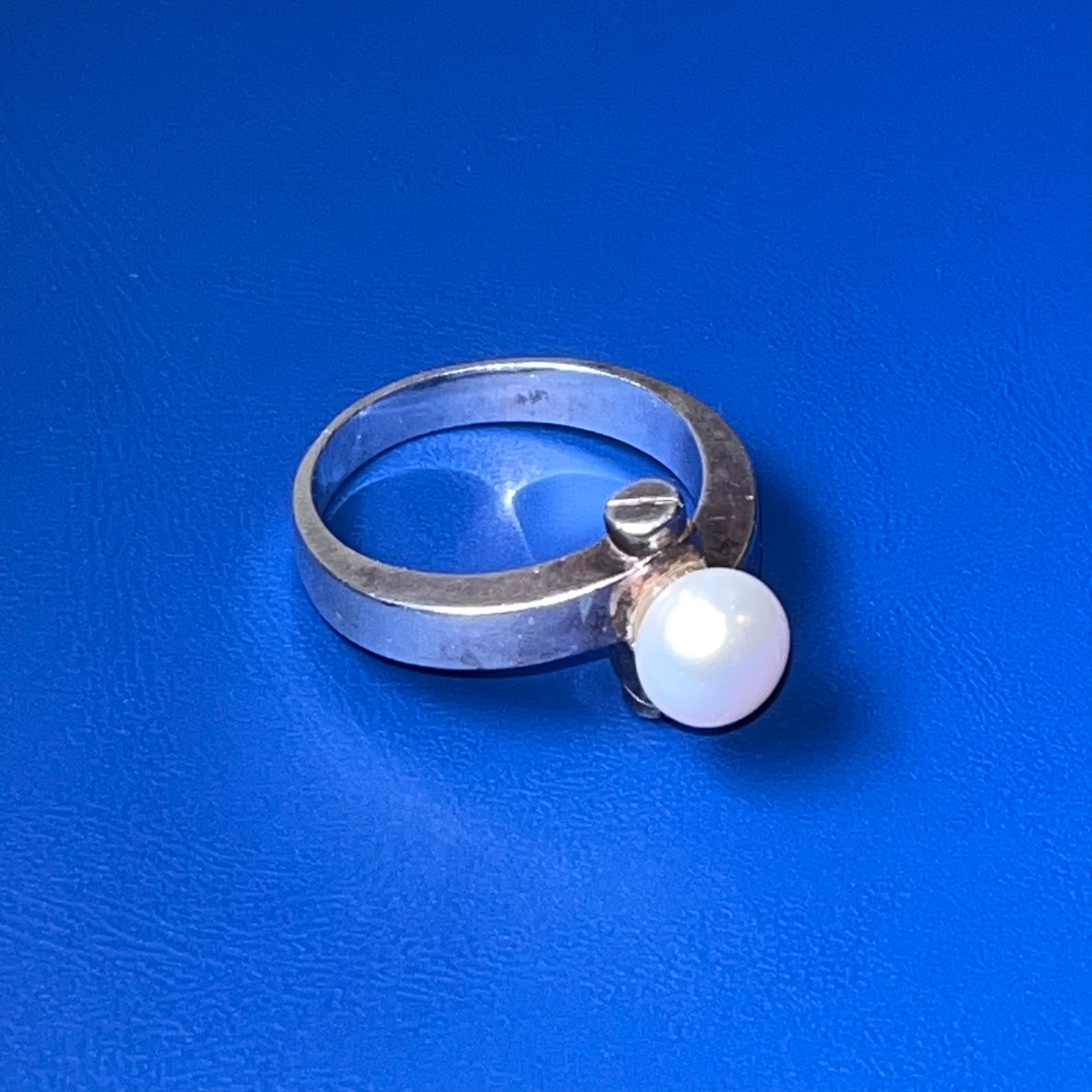 vintage silver coil design ring set with fake pearl