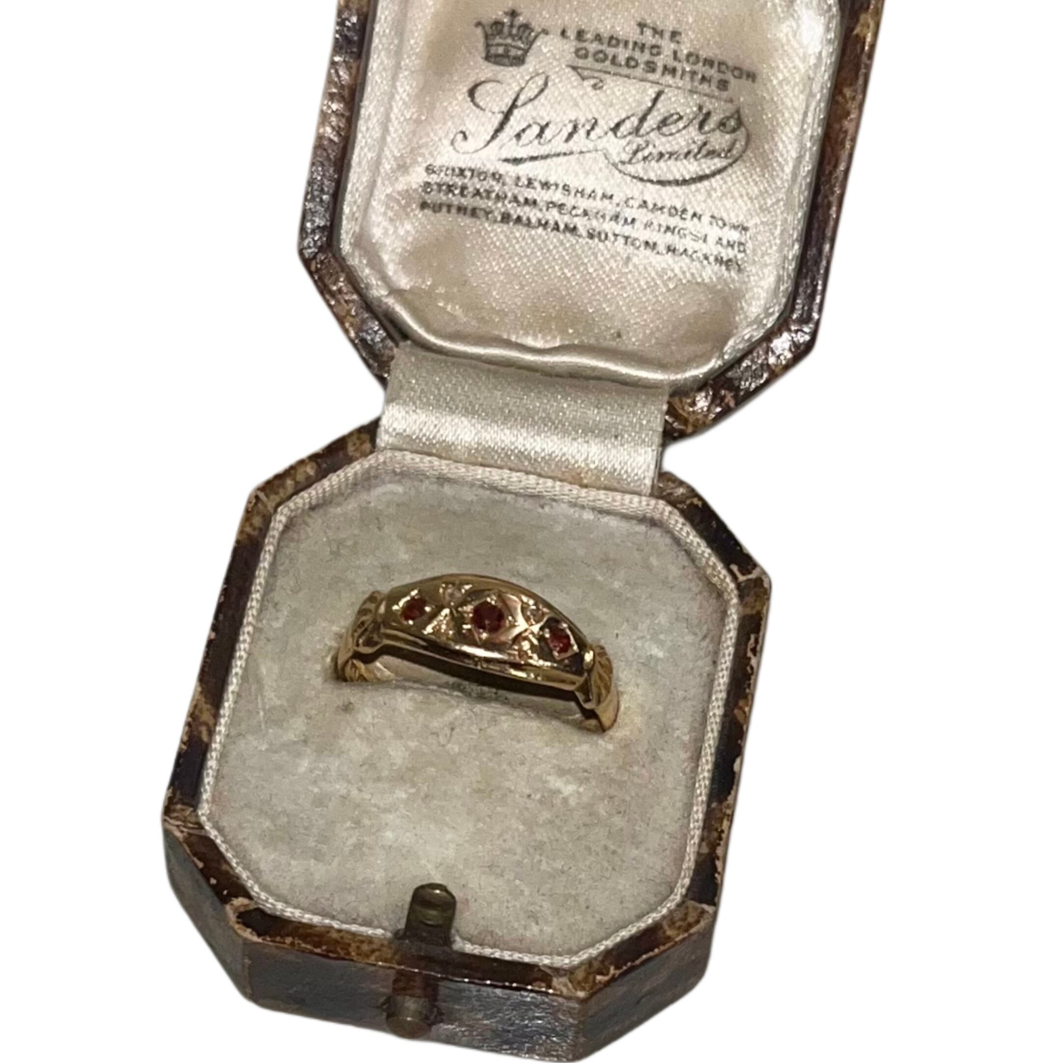 antique c1911 18ct gold red paste & diamond gypsy ring