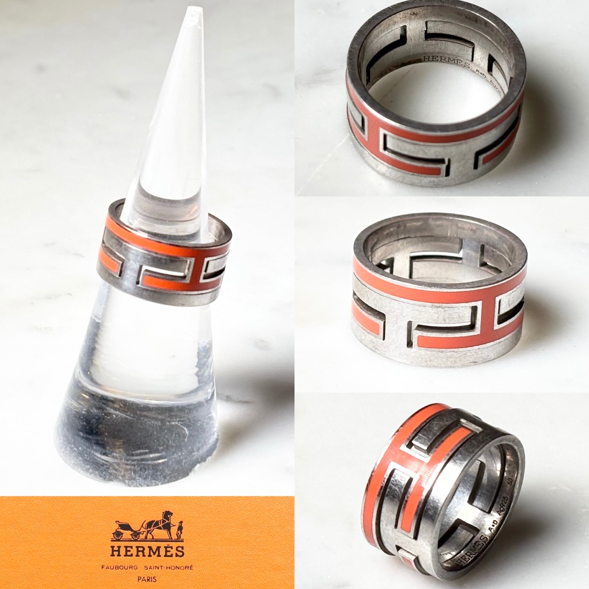 HERMES silver “Move H” ring Orange
