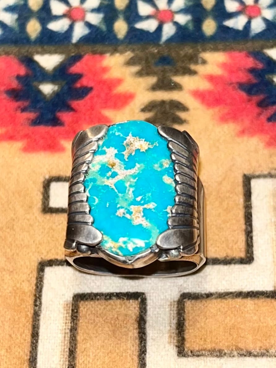 こちらは緑の強い大粒のパイロットマウンテンターコイズを用いたリング。