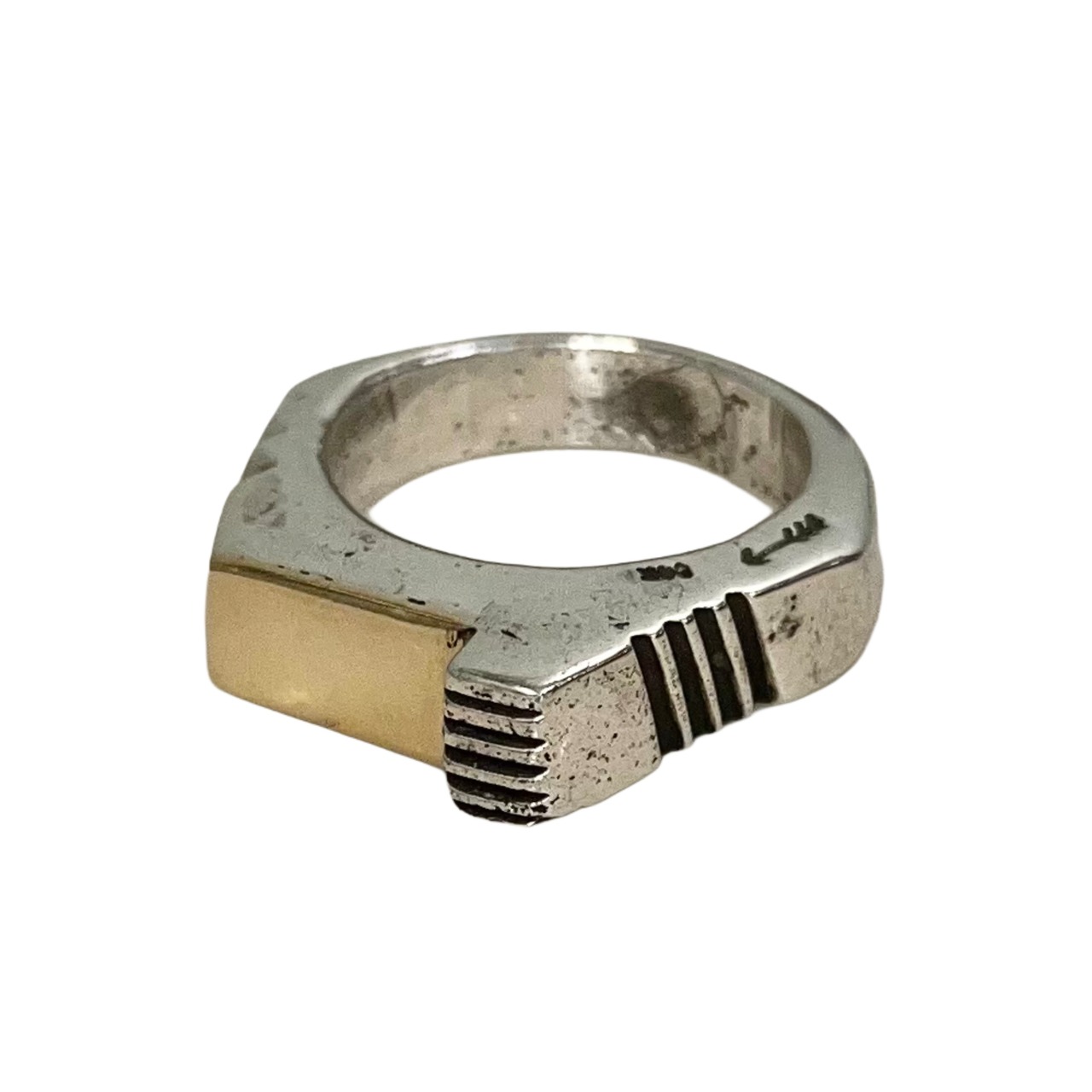 こちらはインゴッドシルバーを用いたアシンメトリーなコンテンポラリーデザインリング。