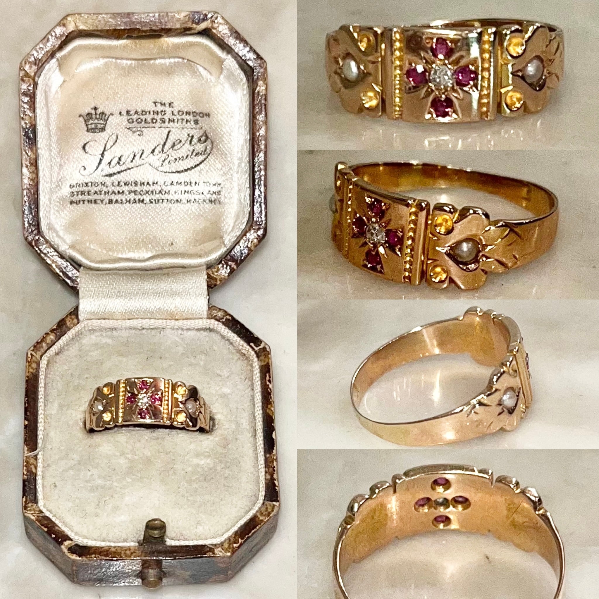 antique victorian 9ct gold diamond&ruby&seed pearl ring