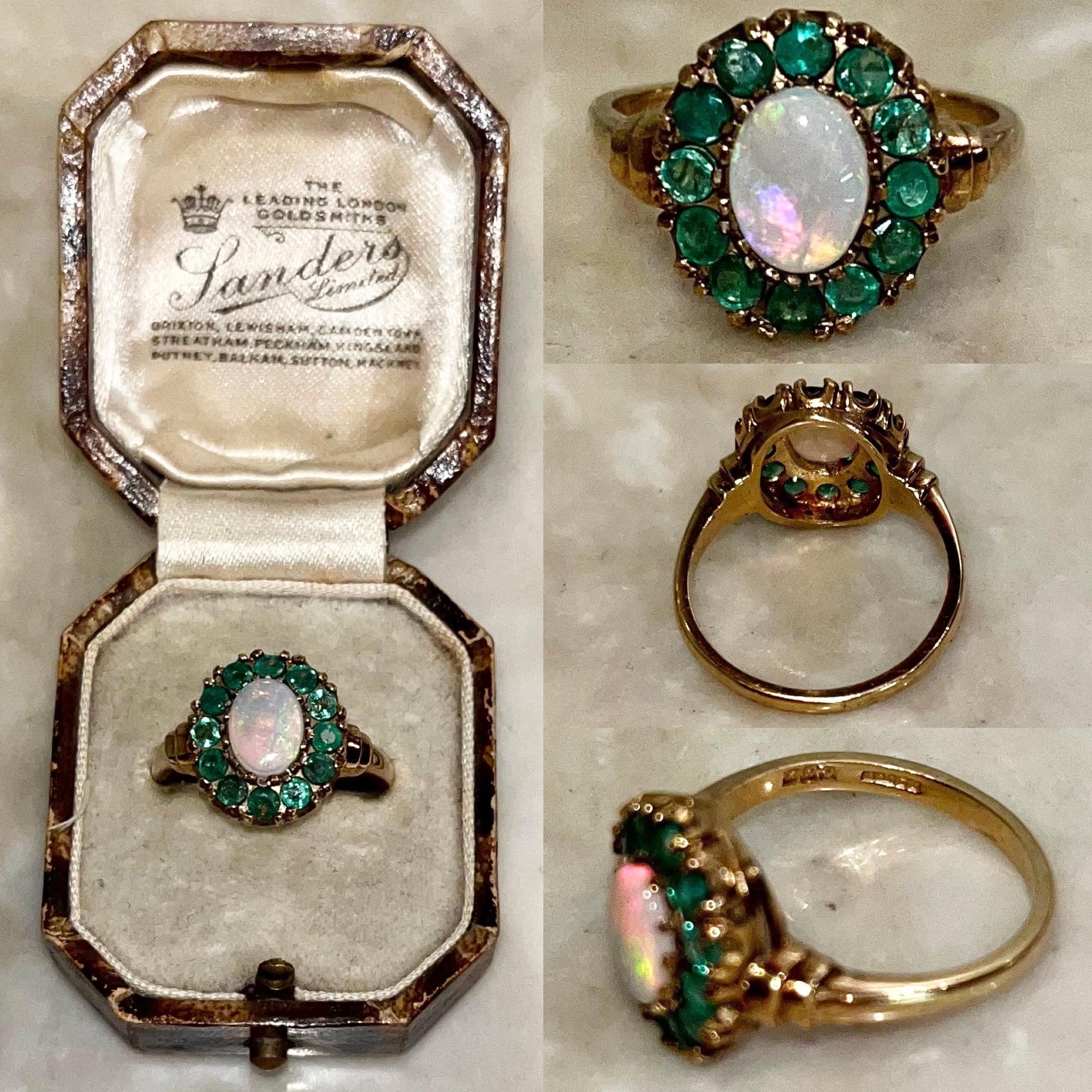 vintage 9ct gold opal ring surrounded with emerald