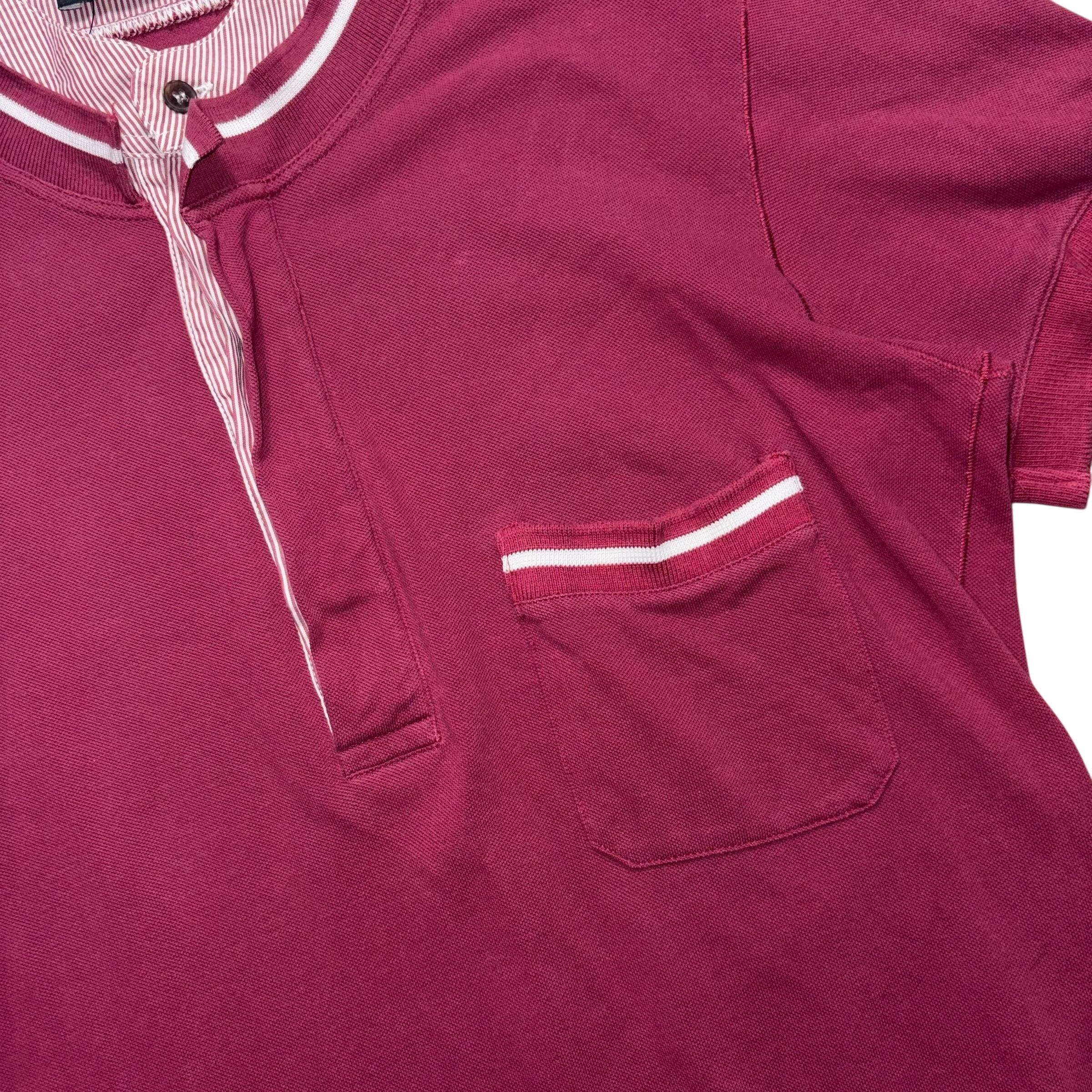 襟下ノーカラーシャツのフェイクレイヤード。