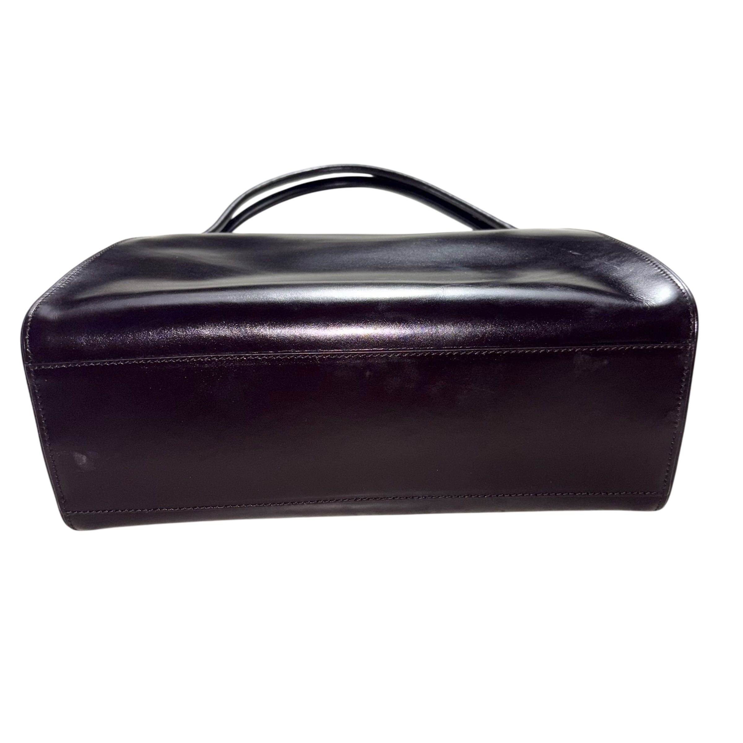 光沢レザーハンドバッグ。