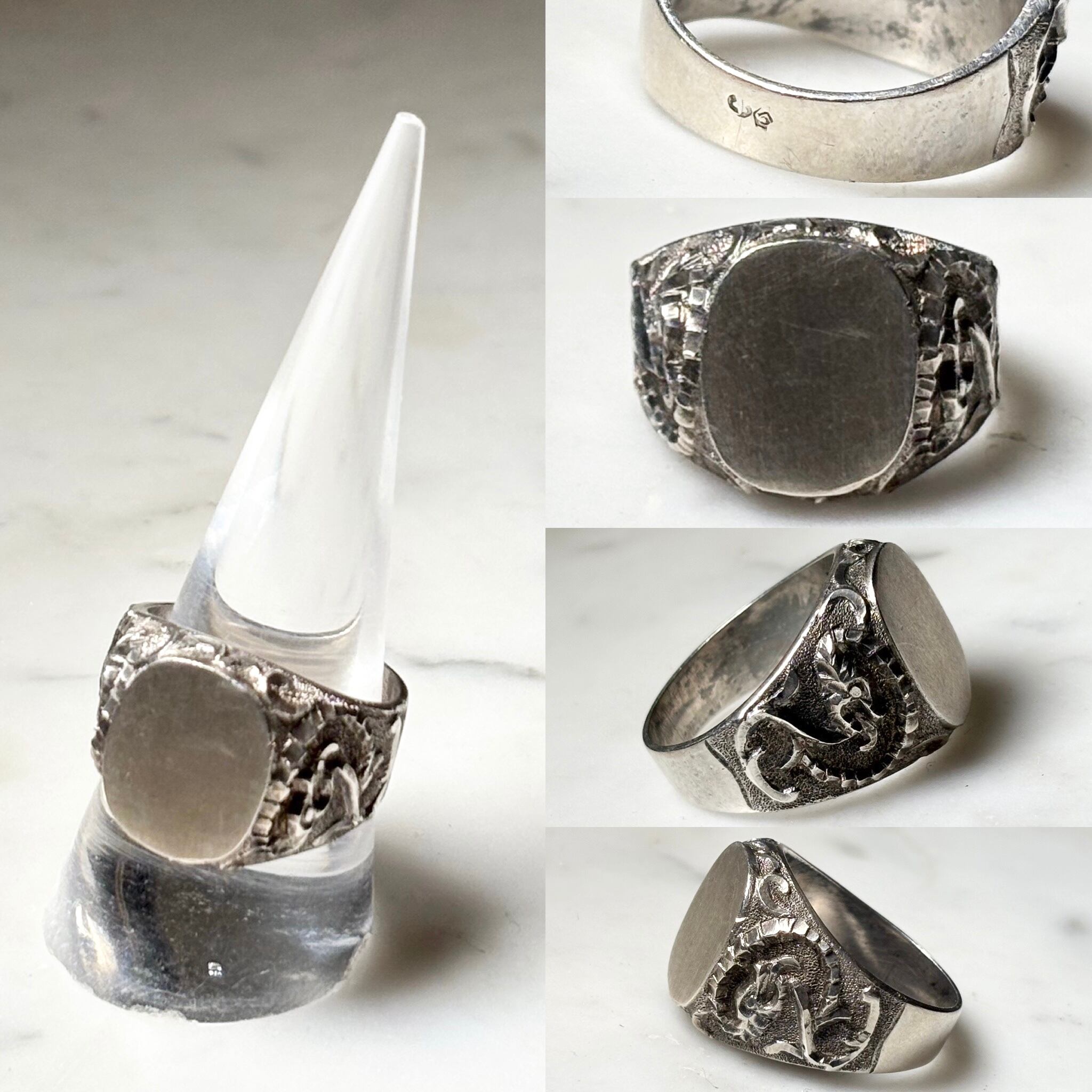 vintage French silver dragon signet ring