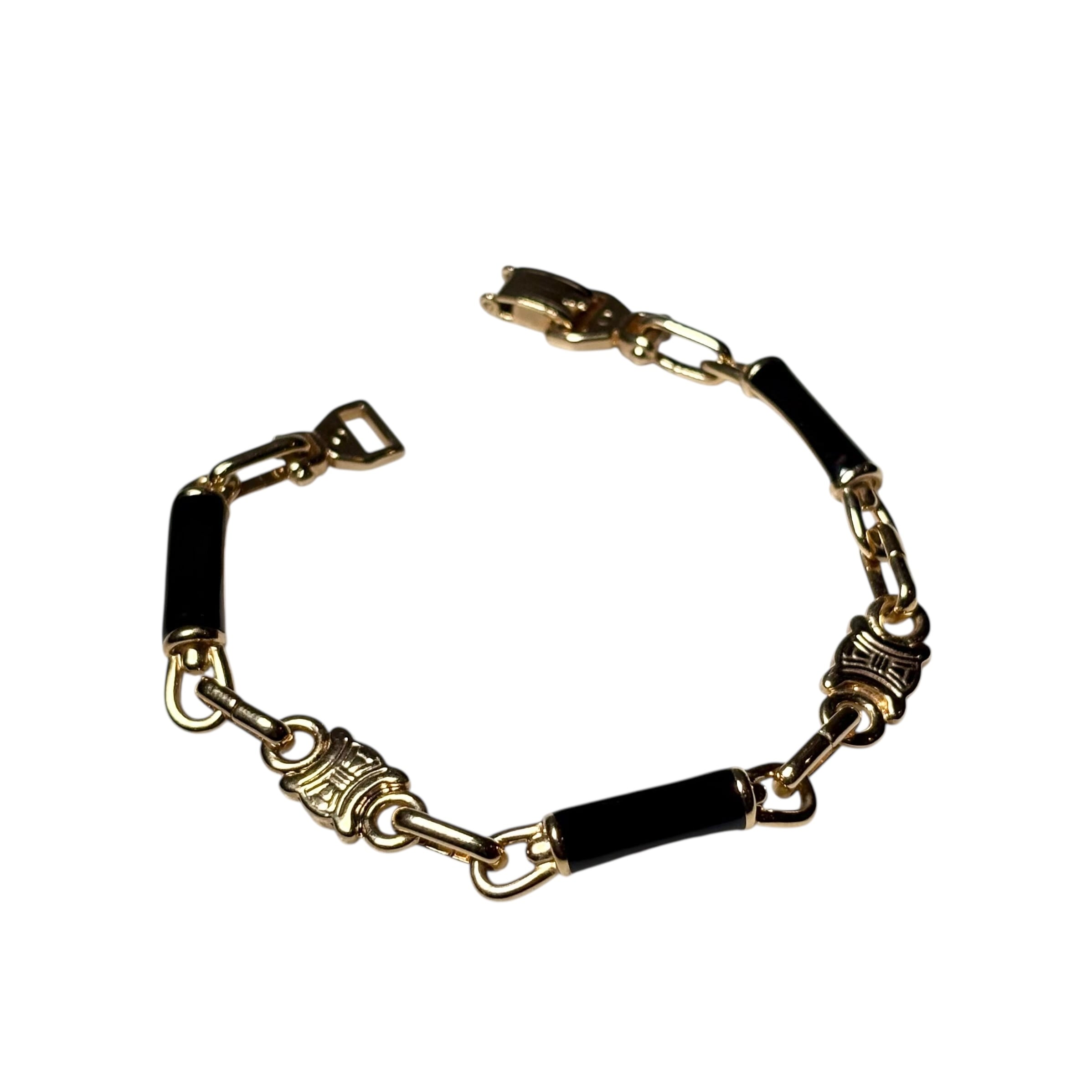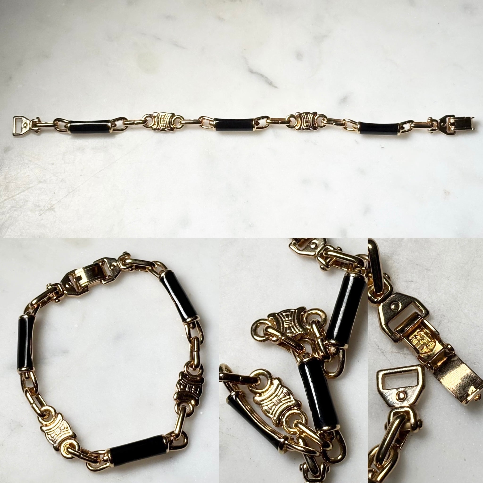 vintage CELINE gold metal × black enamel link bracelet