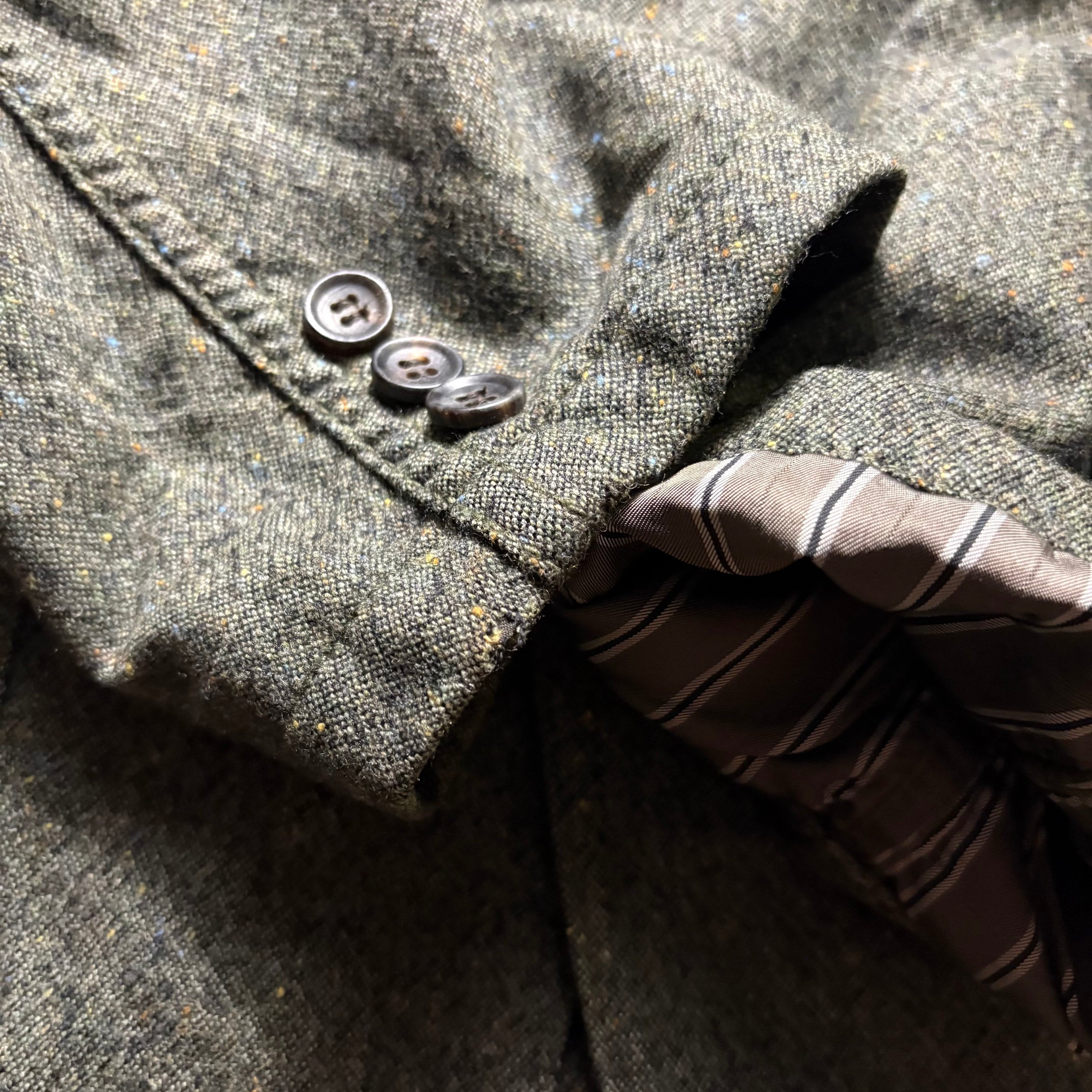 渋いチャコールカラーに飛ぶマルチカラーネップ。