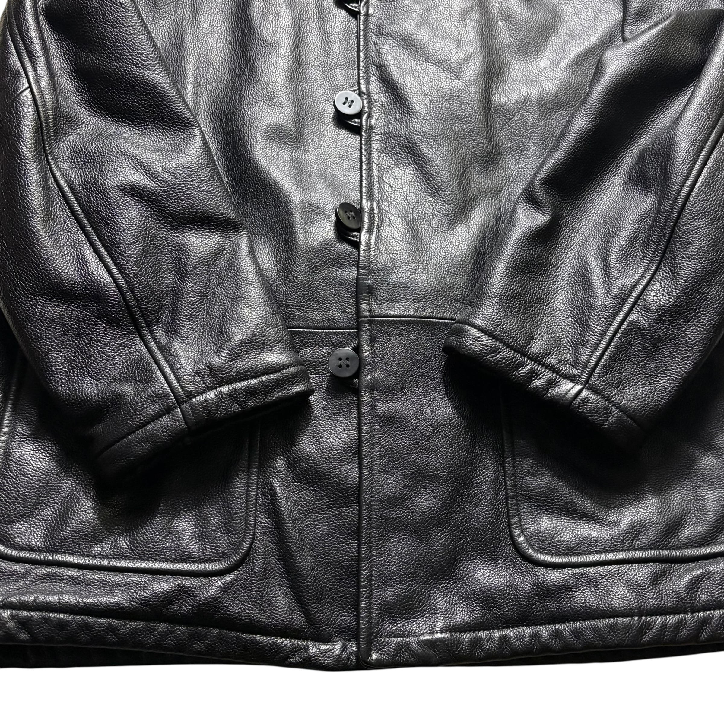 重厚黒レザーカーコート。