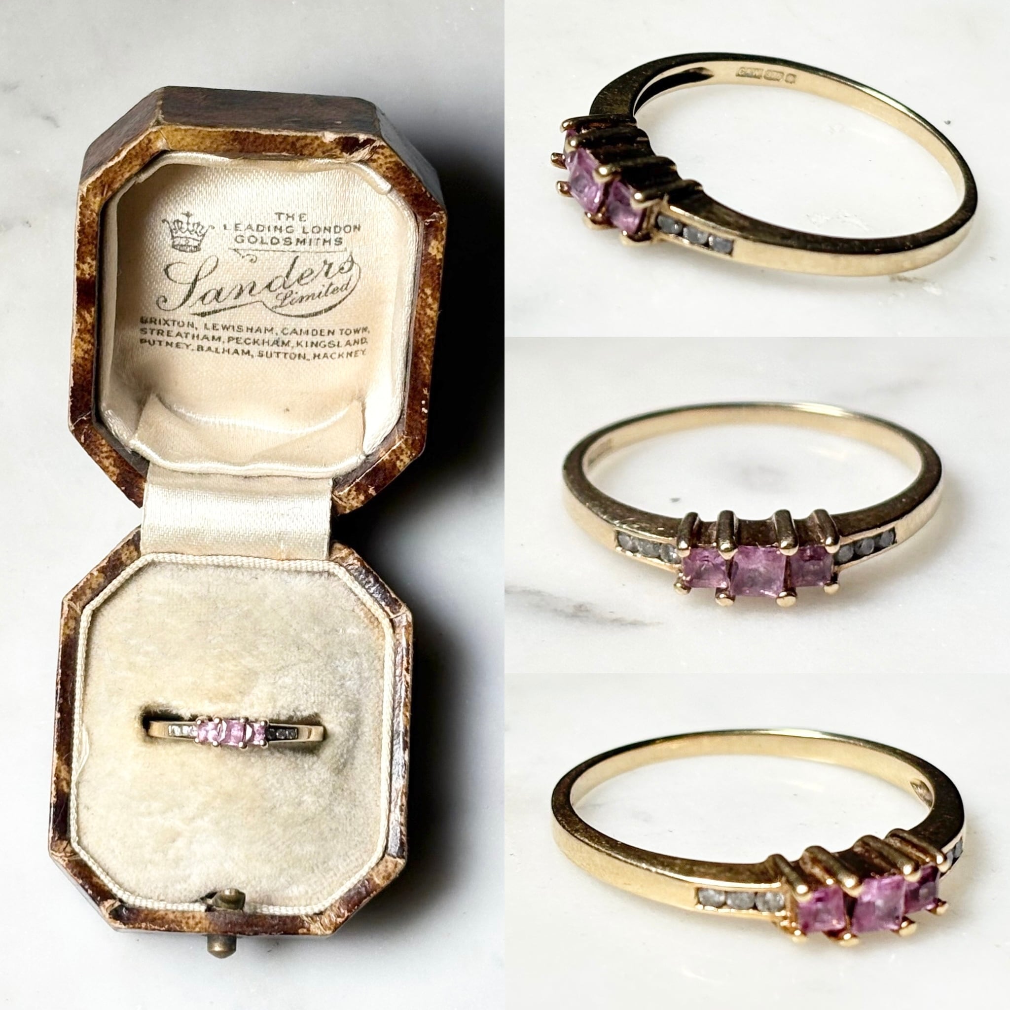 vintage 9ct gold Diamond & gemstone ring