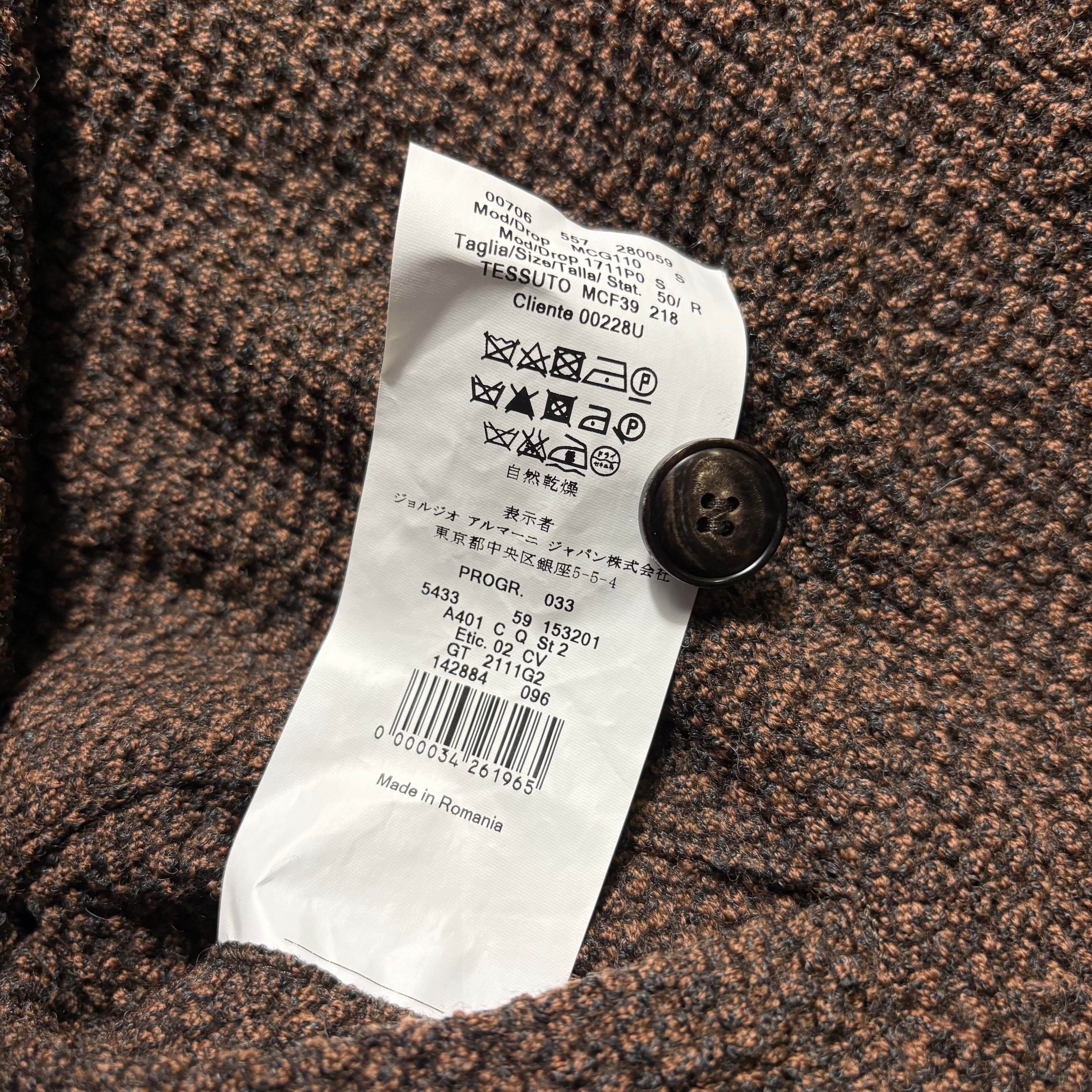 size : 表記50 実寸(肩幅44cm 身幅52.5cm 着丈74cm 袖丈61.5cm)