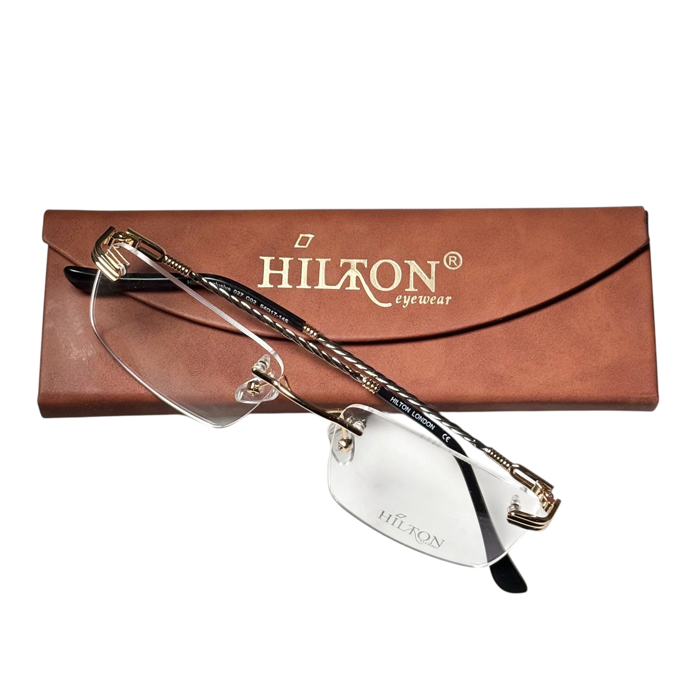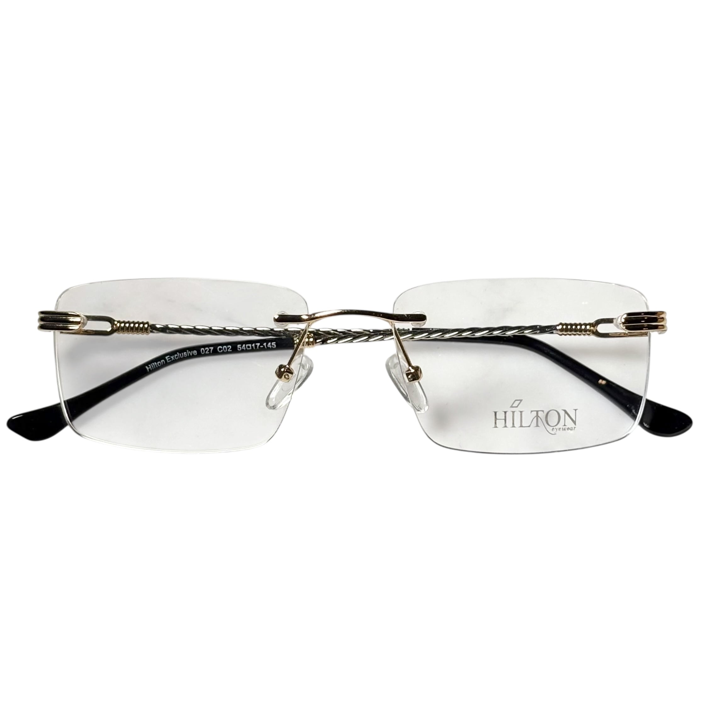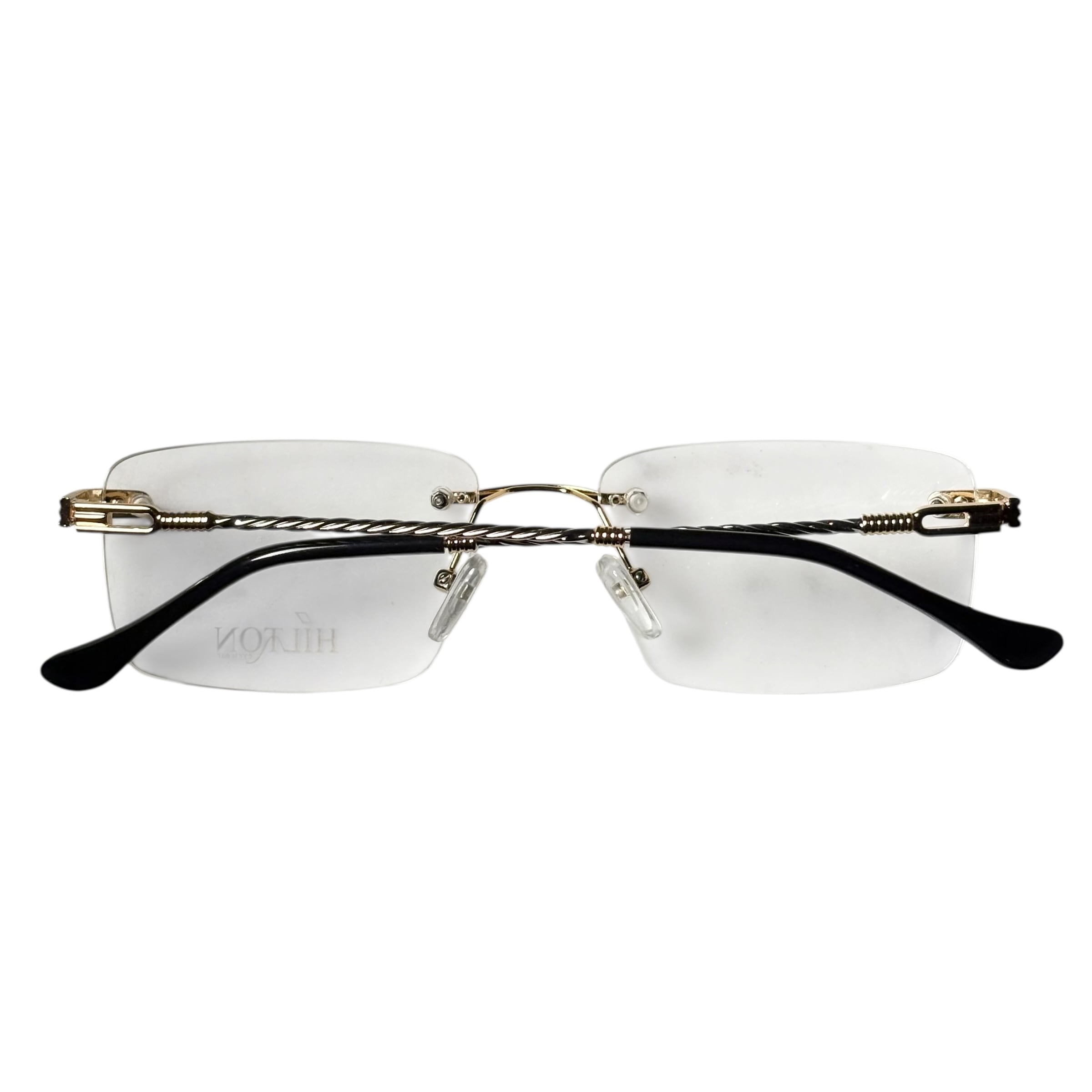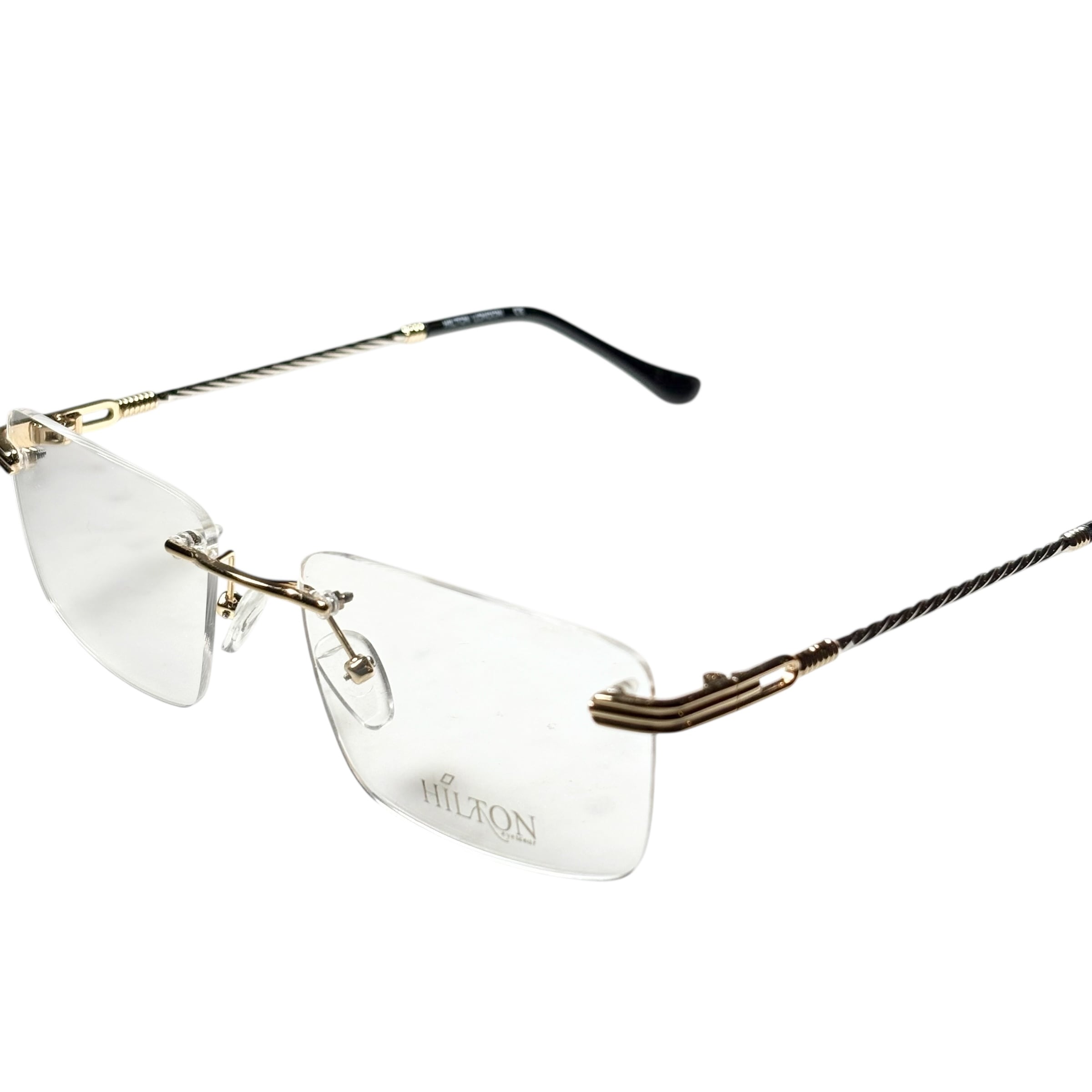 (nos) vintage HILTON gold × silver color twist arm rimless glasses