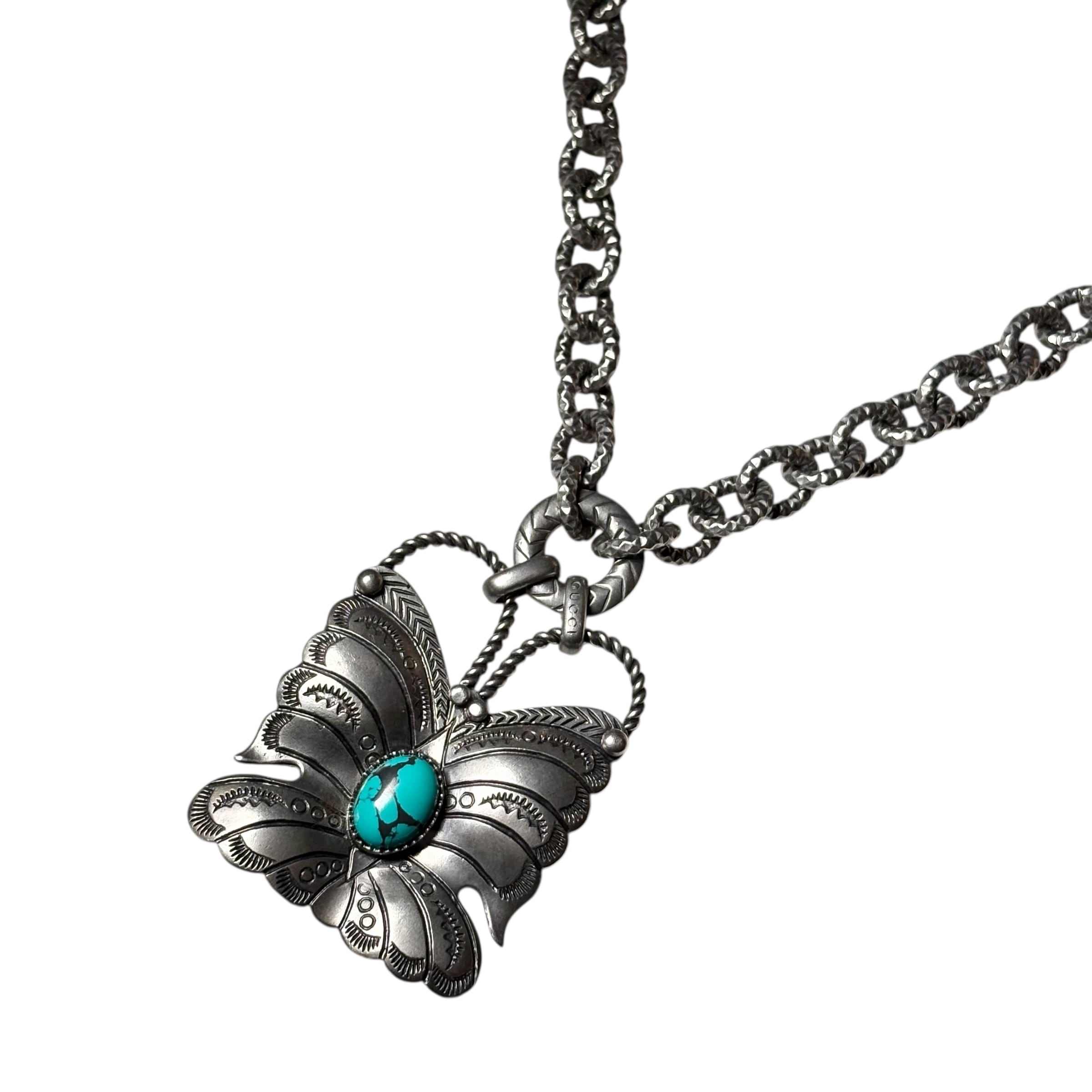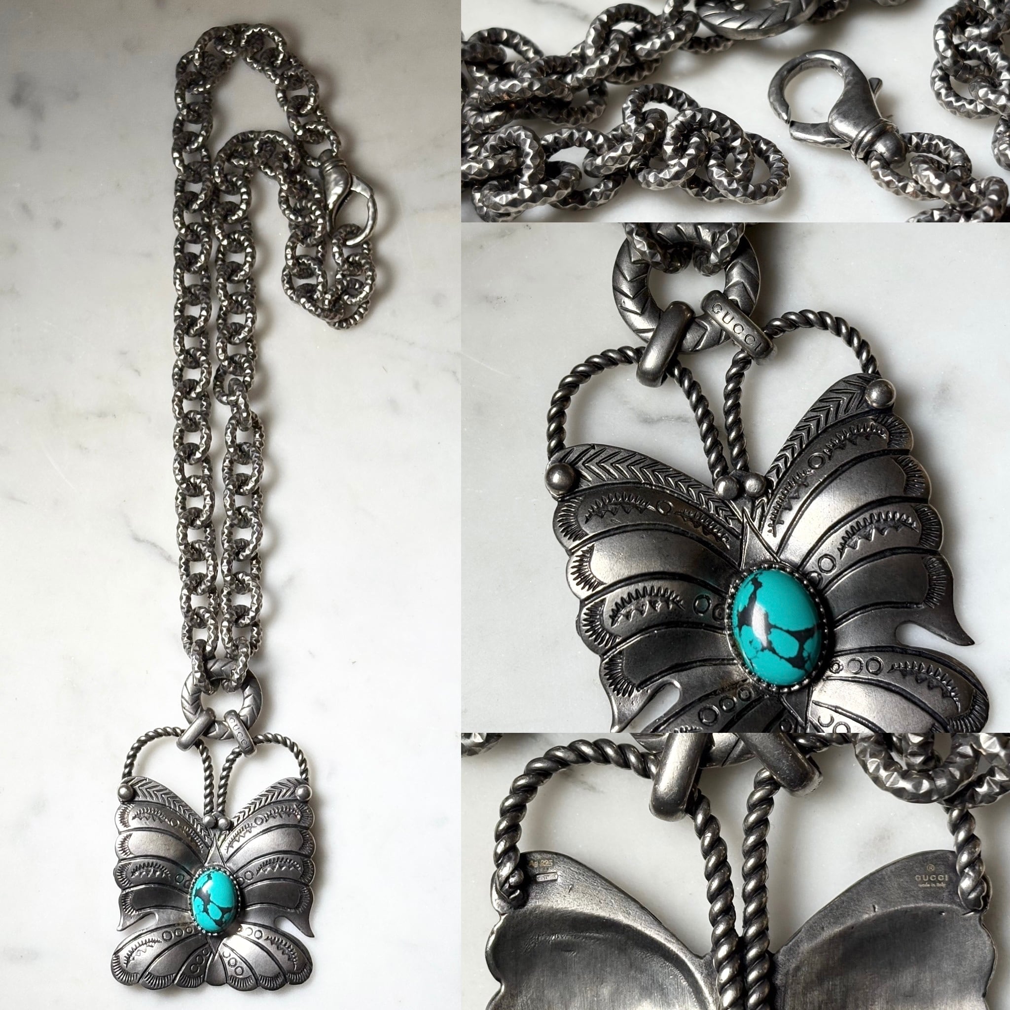 GUCCI silver big pendant & chunky chain necklace “Butterfly”