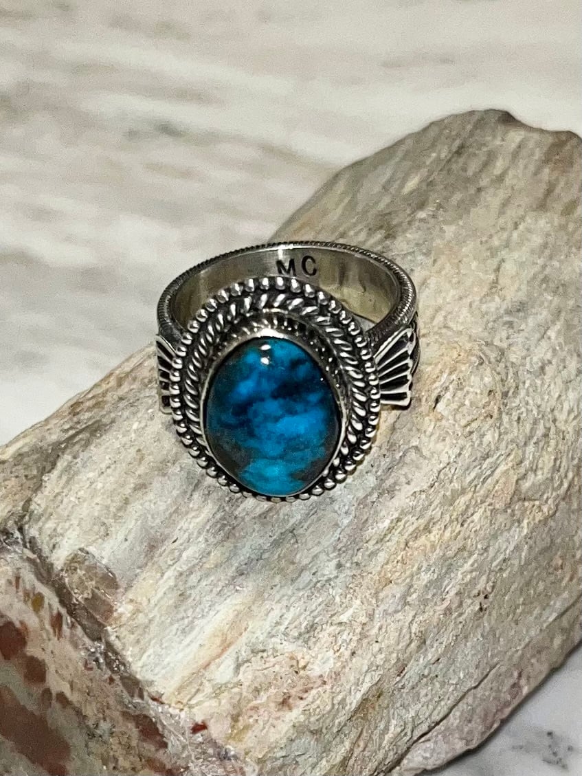 navajo Mary Cayantineto smoky bisbee turquoise silver ring