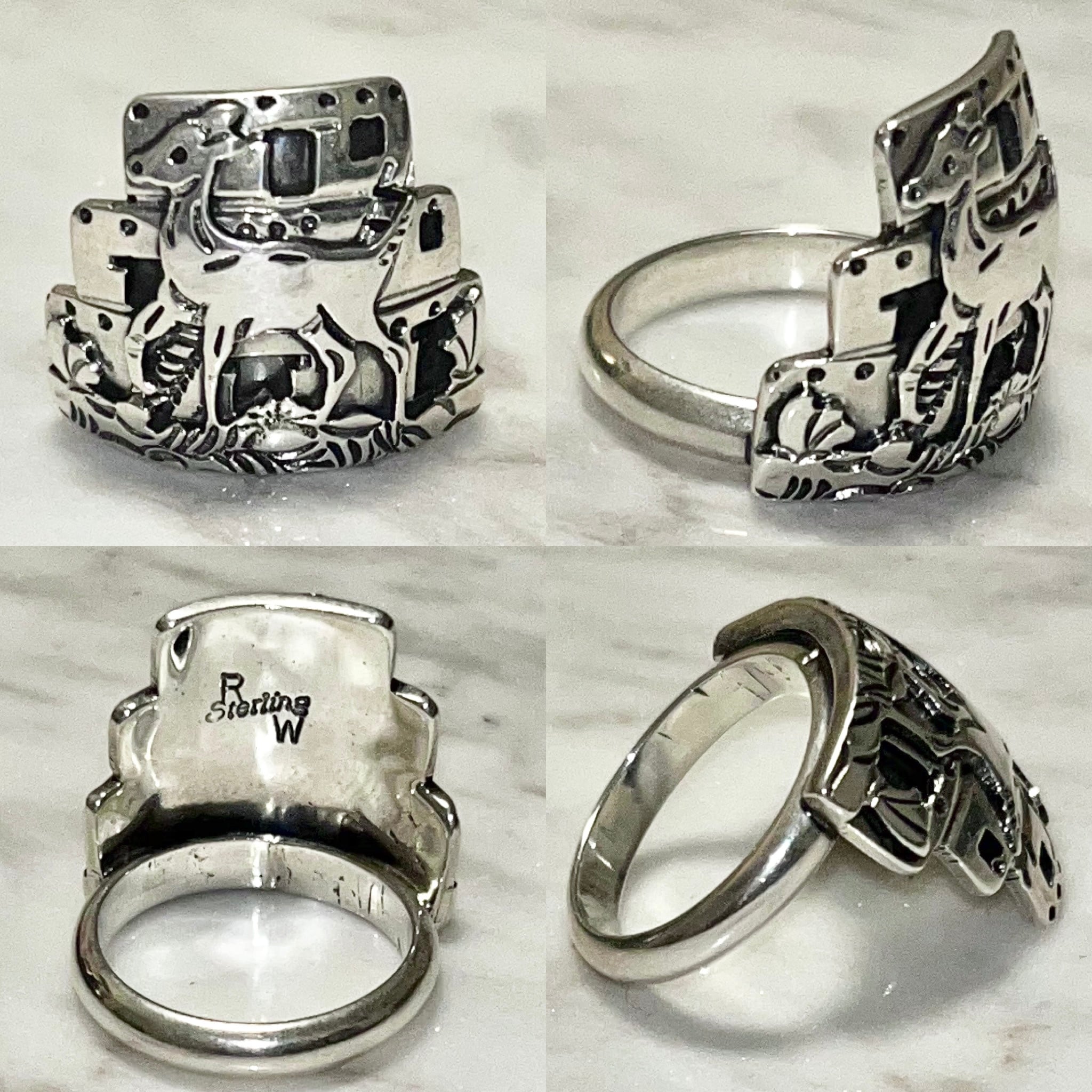 navajo deer motif silver ring