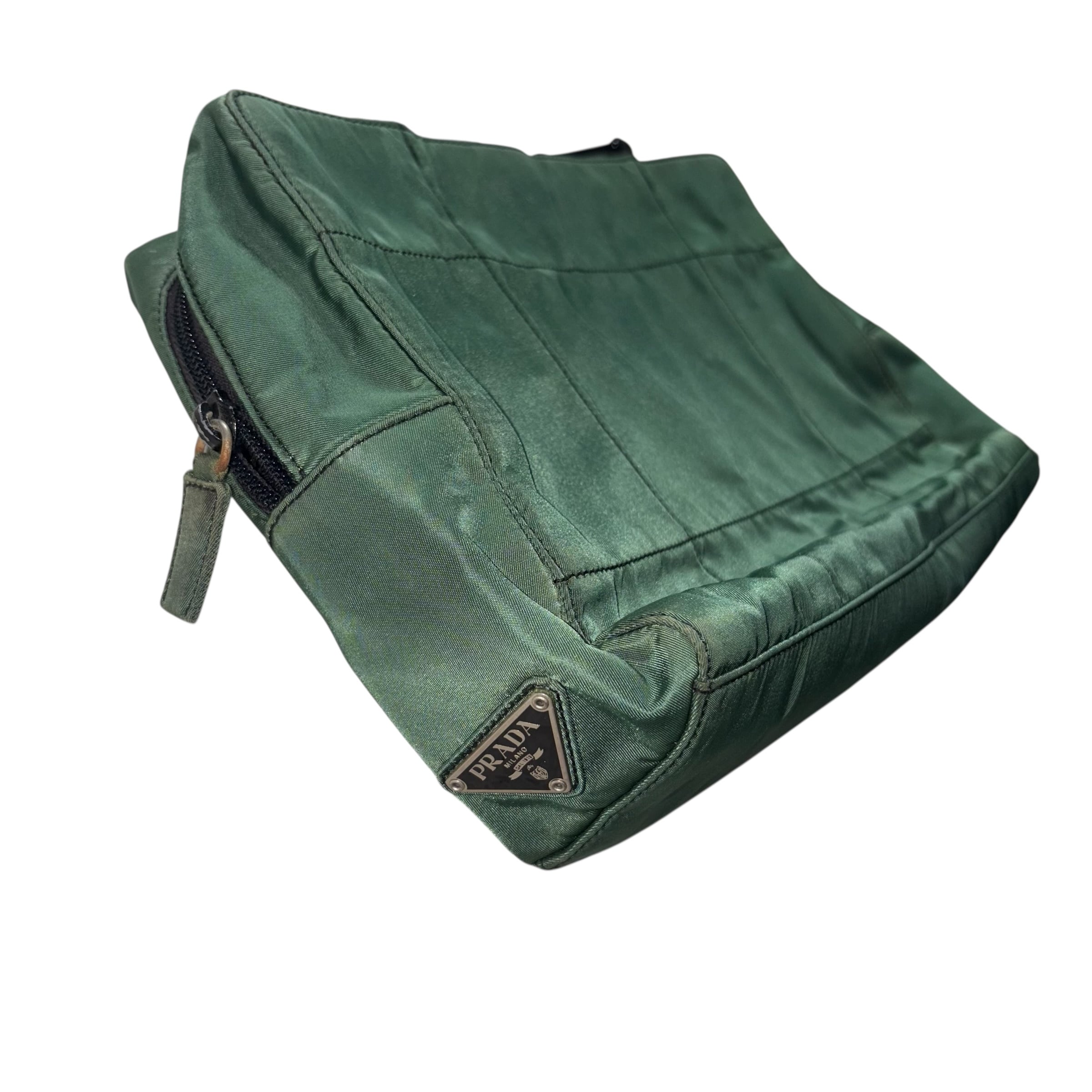 ステッチワークが施されたグリーンナイロン。
