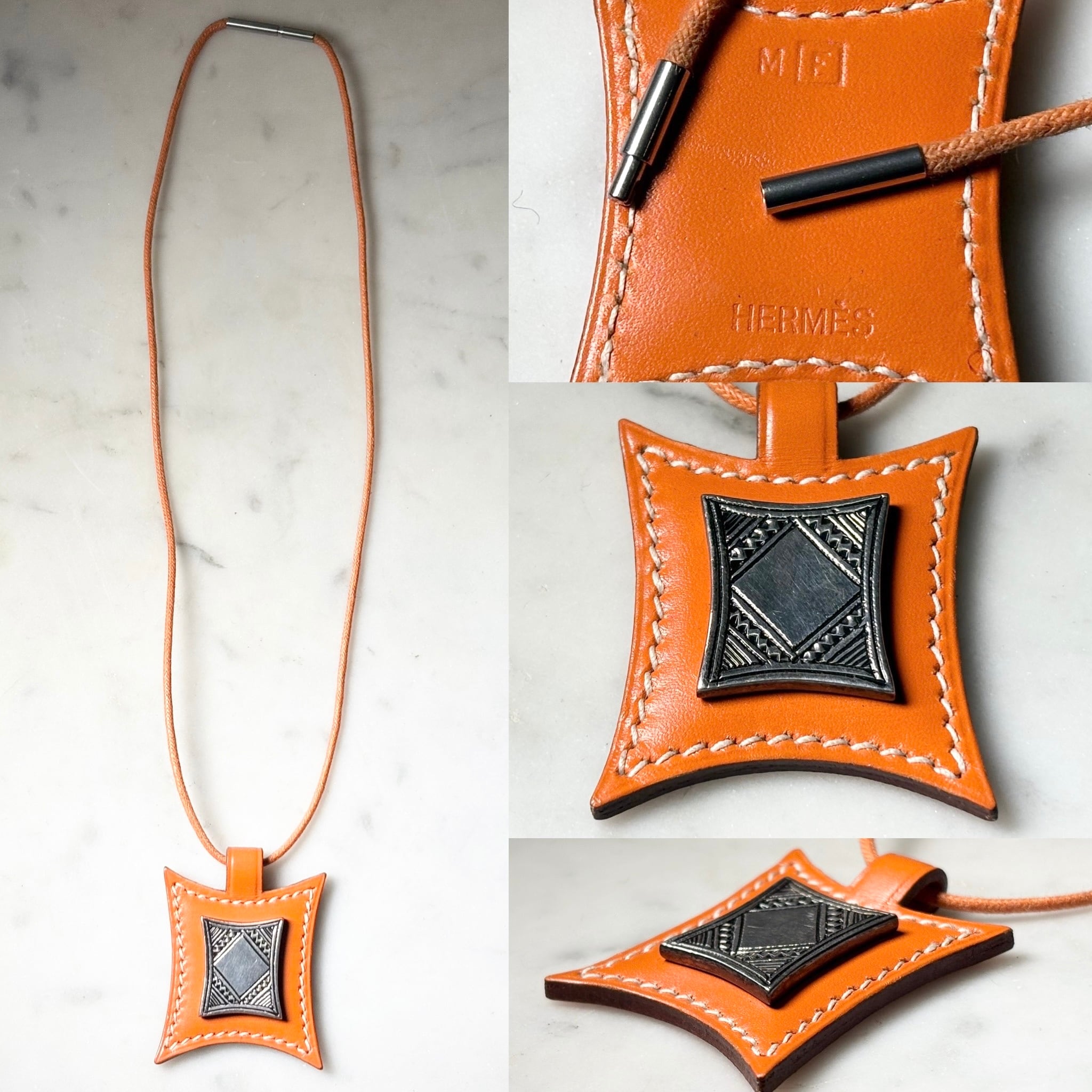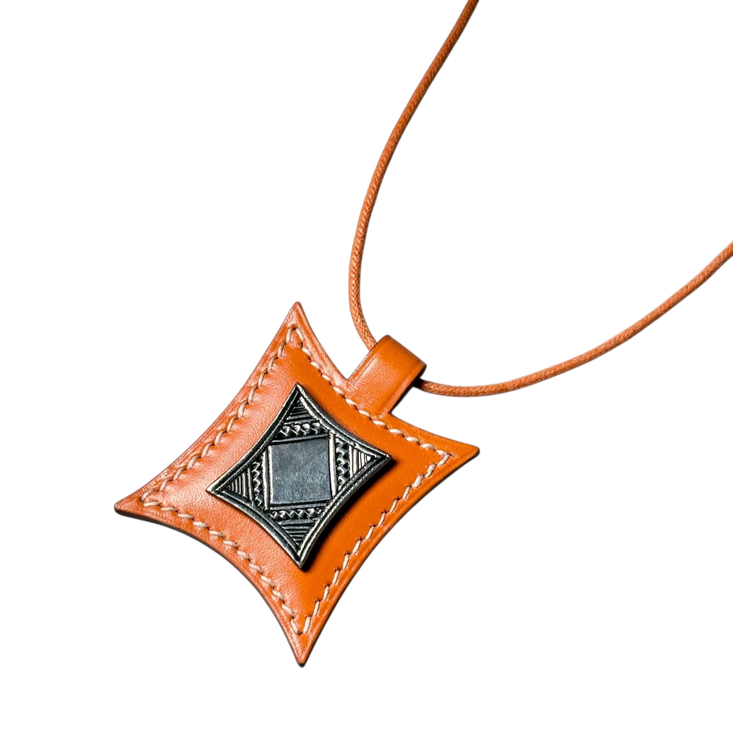 HERMES silver × orange leather necklace “Touareg”