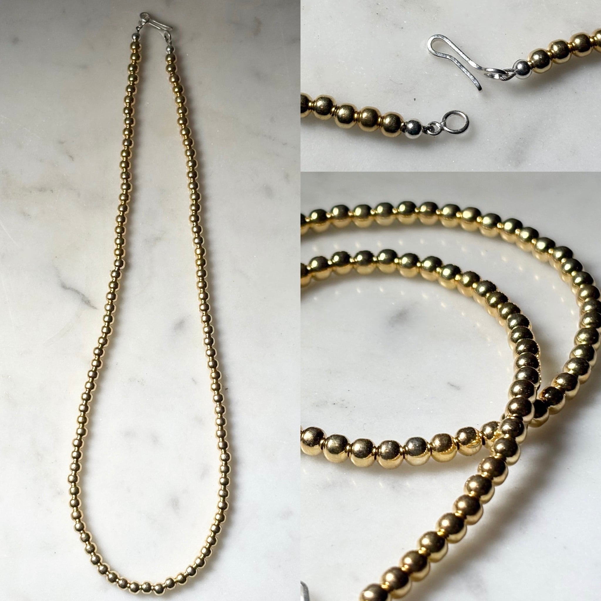 Navajo gold color silver pearl necklace (40cm φ4mm)