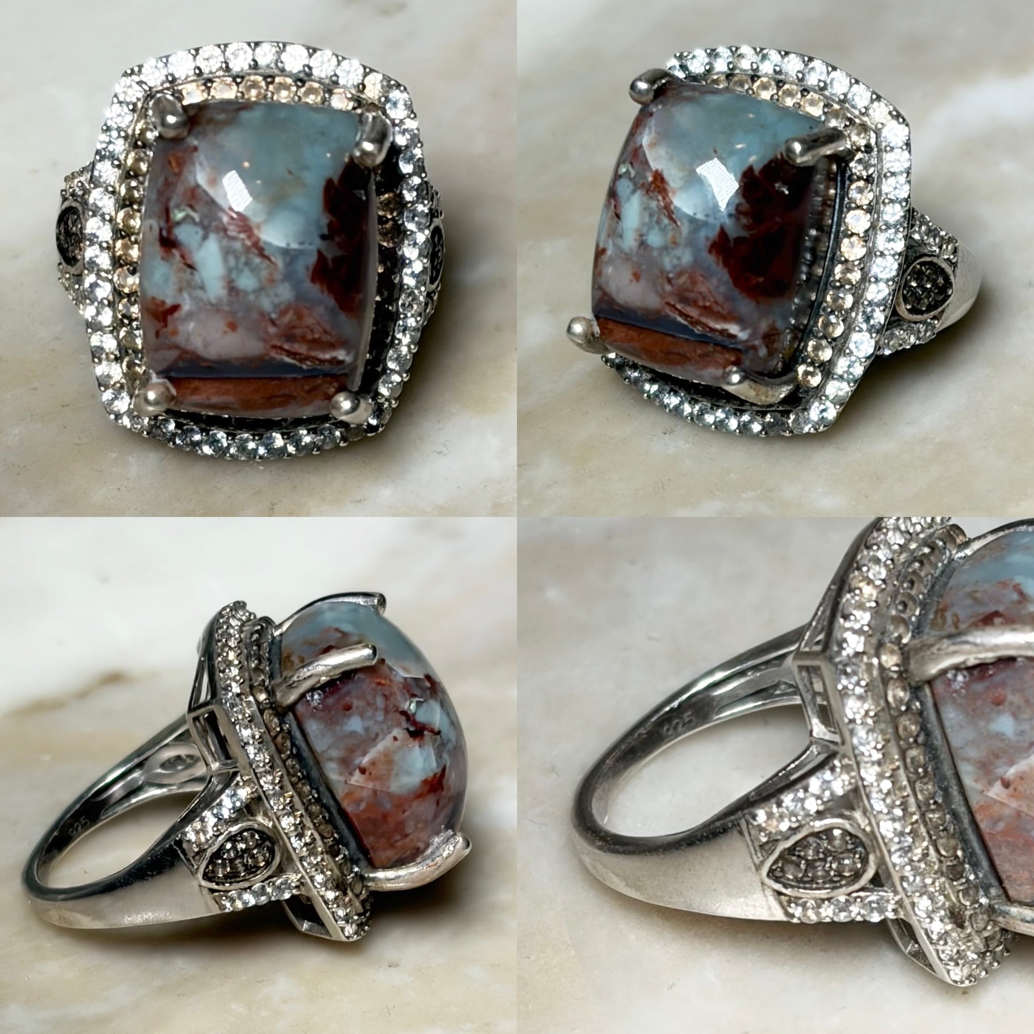vintage silver natural stone ring