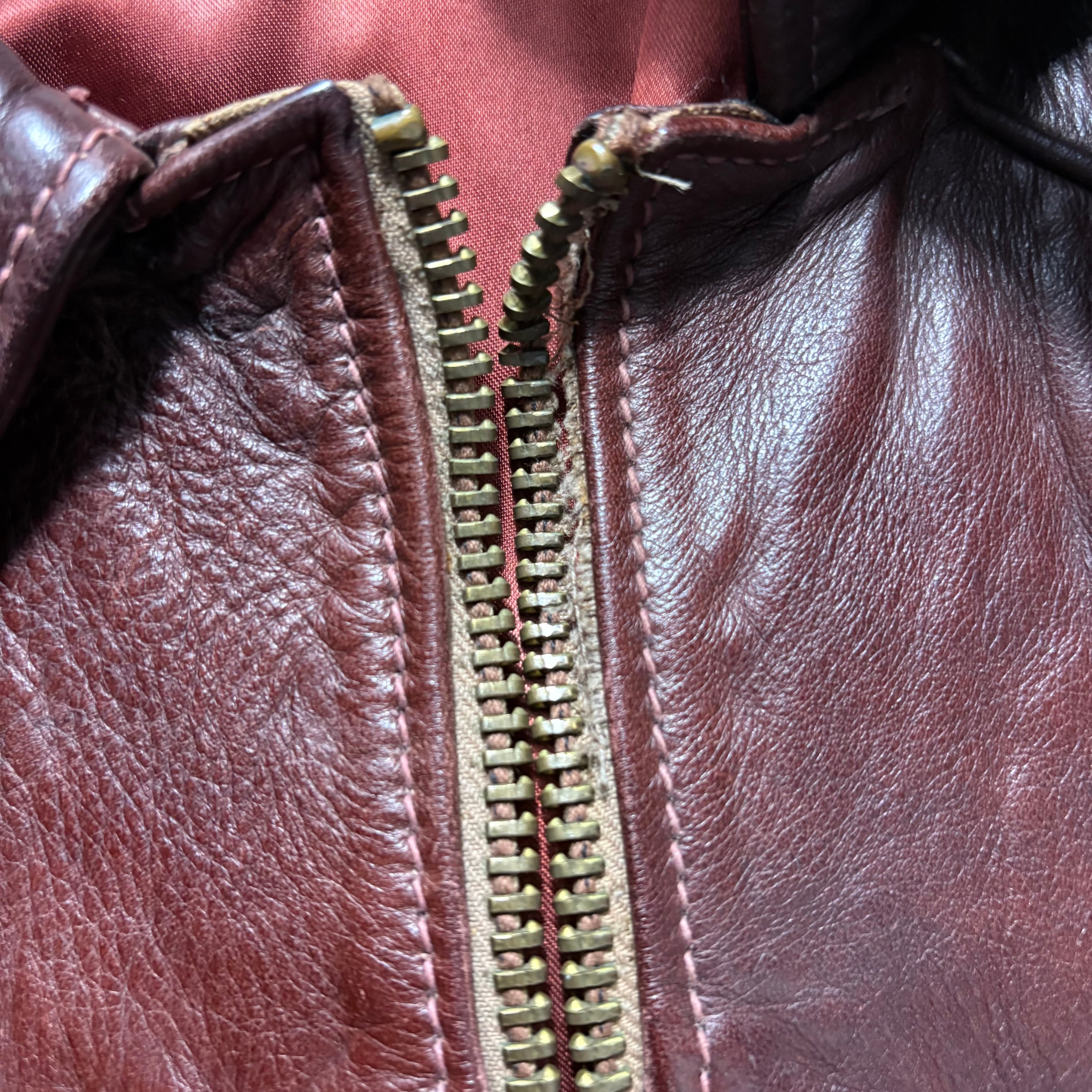 ファスナー上部の布に破れがあるので途中で止めるか交換をおすすめいたします。