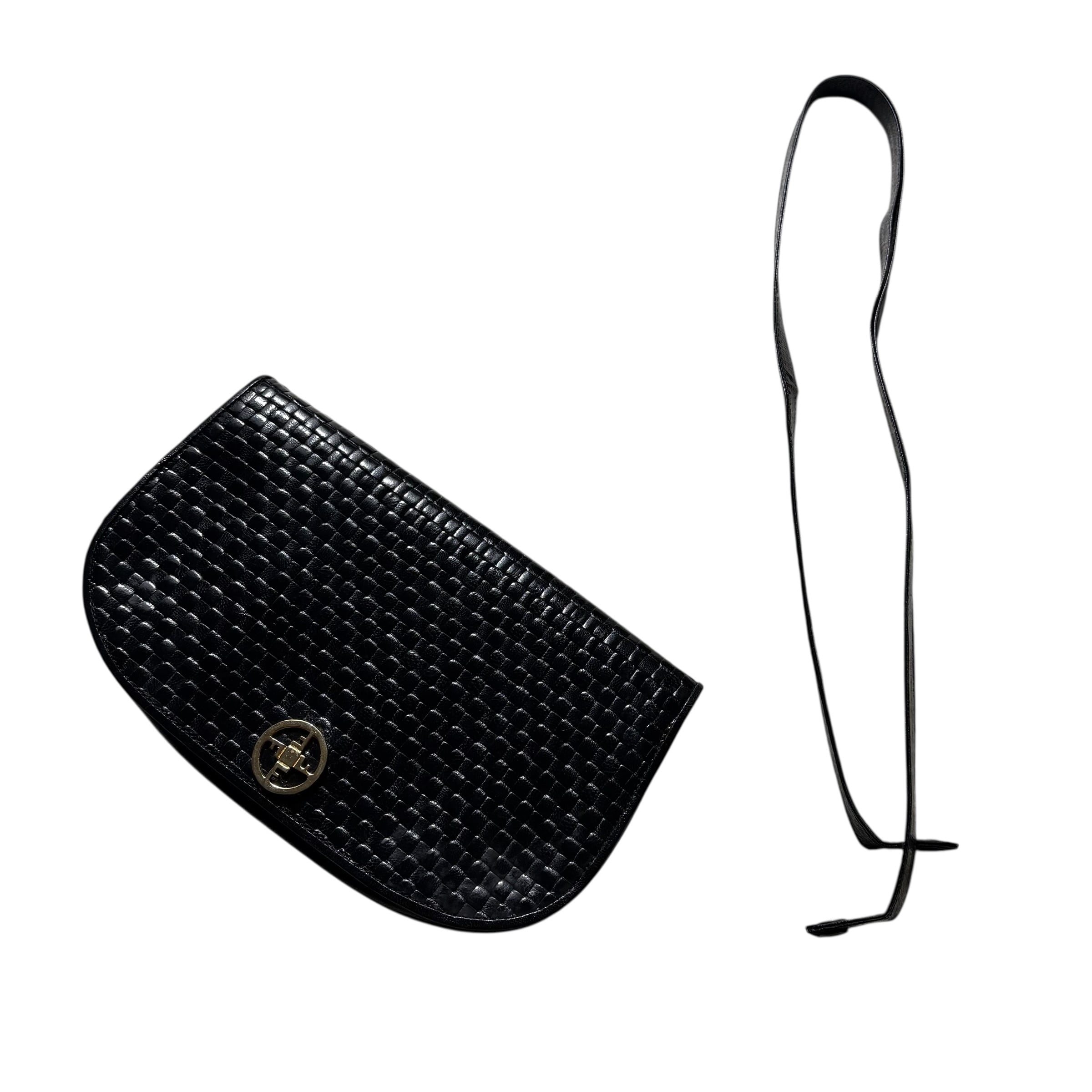 編み込み風の型押しが施されたレザーバッグ。