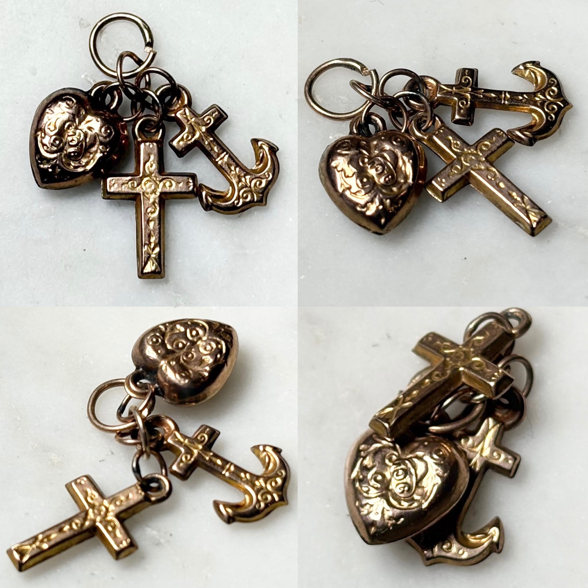 vintage 9ct gold triple charm pendant