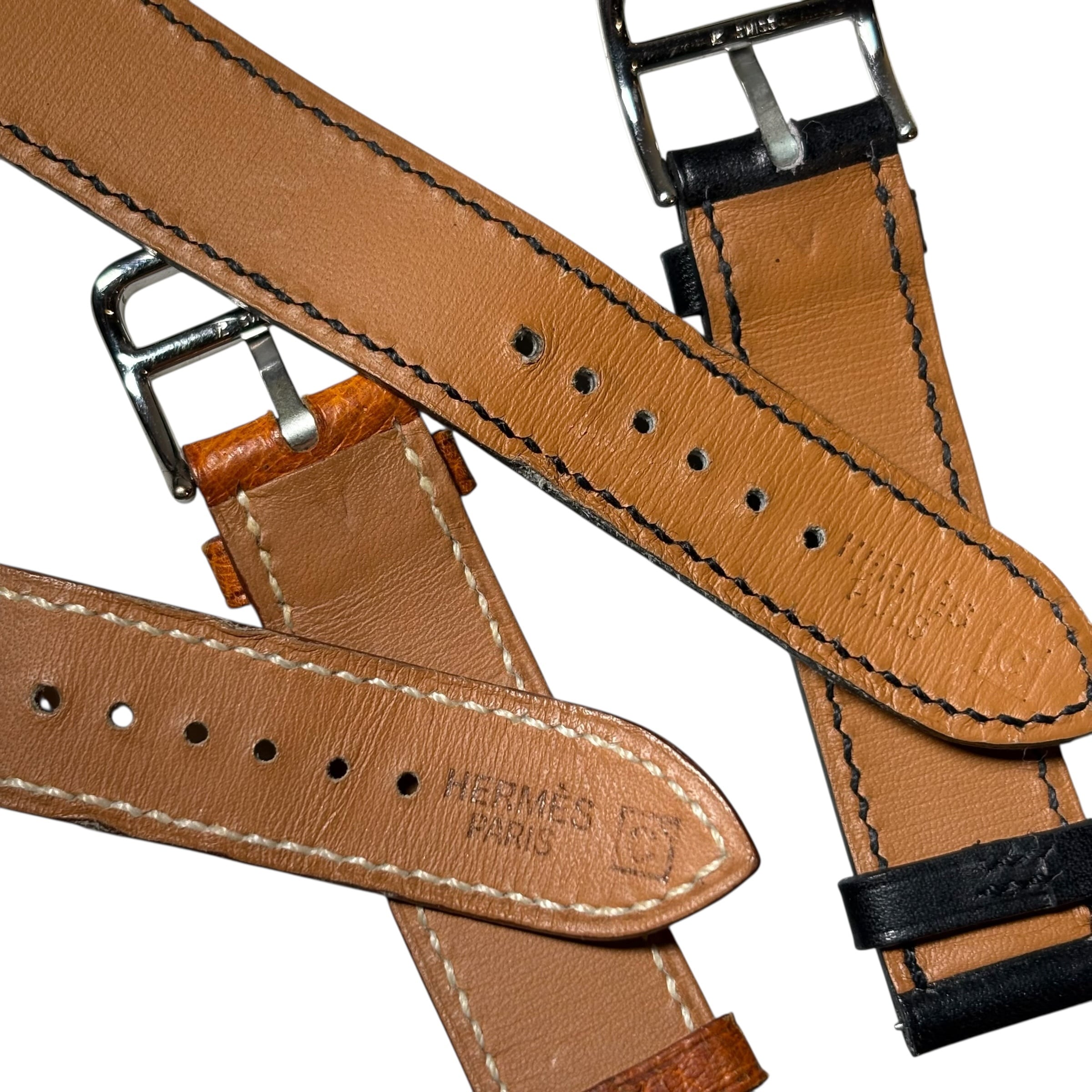 エルメス純正のブラウンとブラックのレザーベルトが附属。
