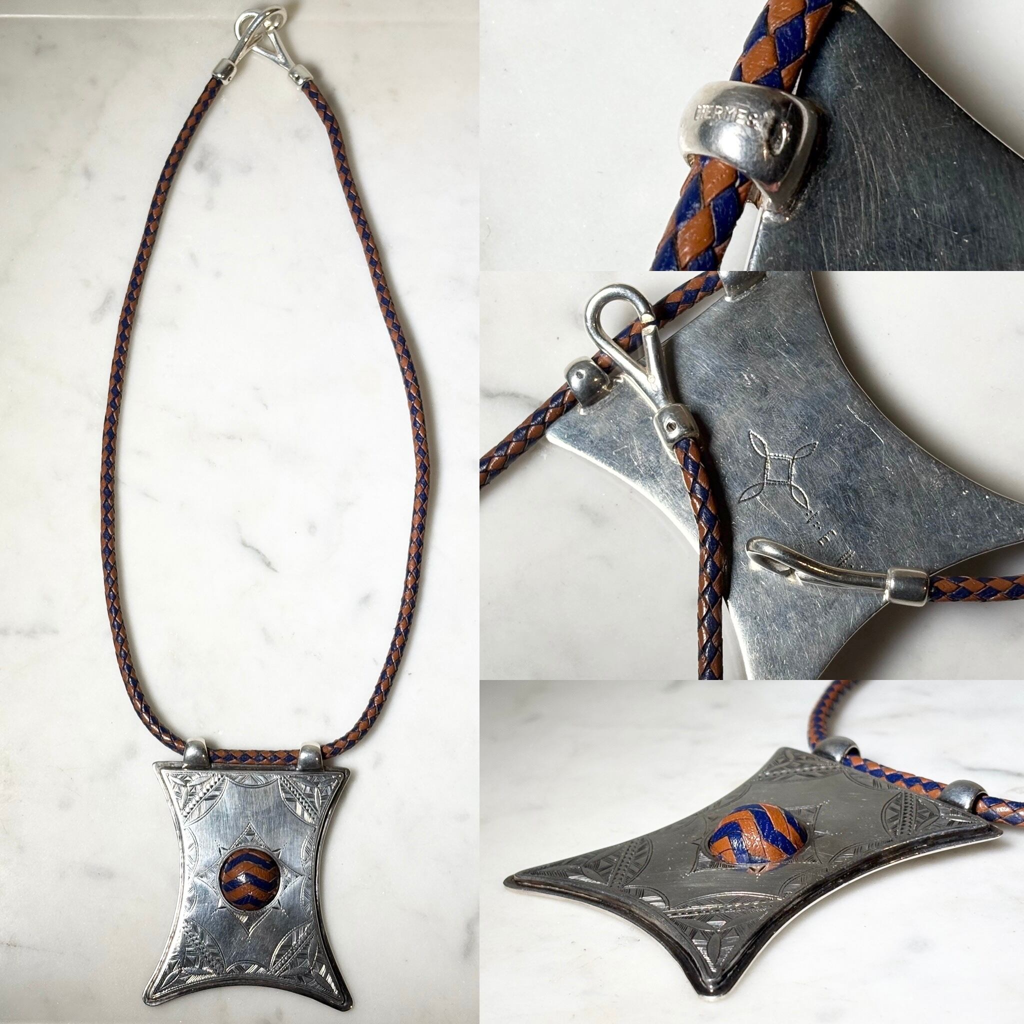 HERMES silver × leather necklace “Touareg”