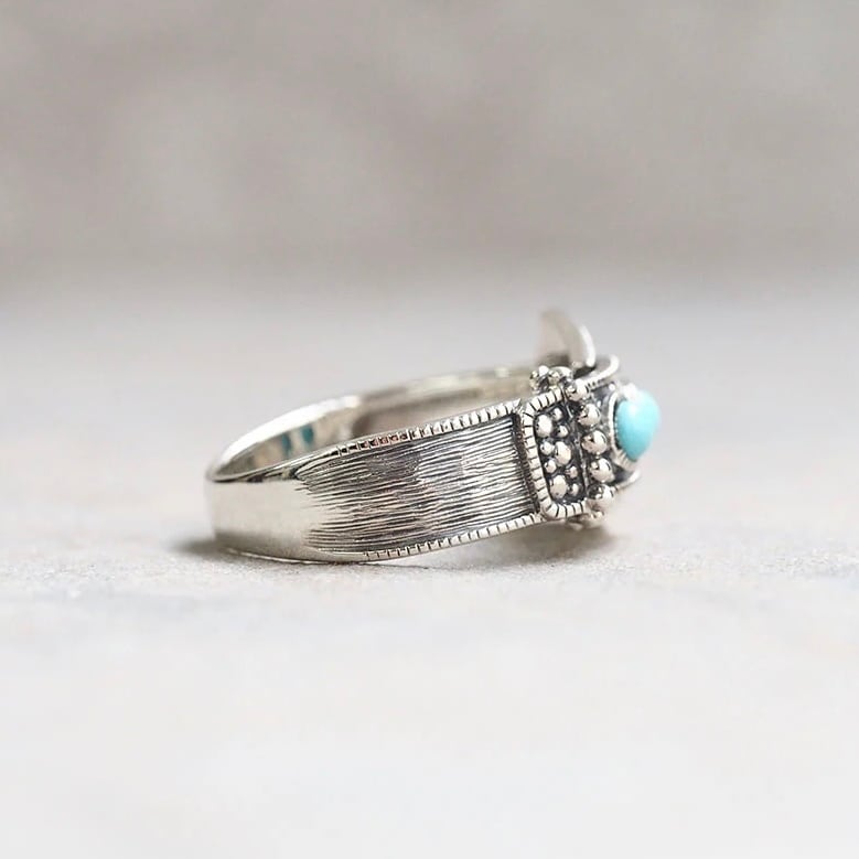 ROKUZAN silver belt ring set with turquoise & seed pearl