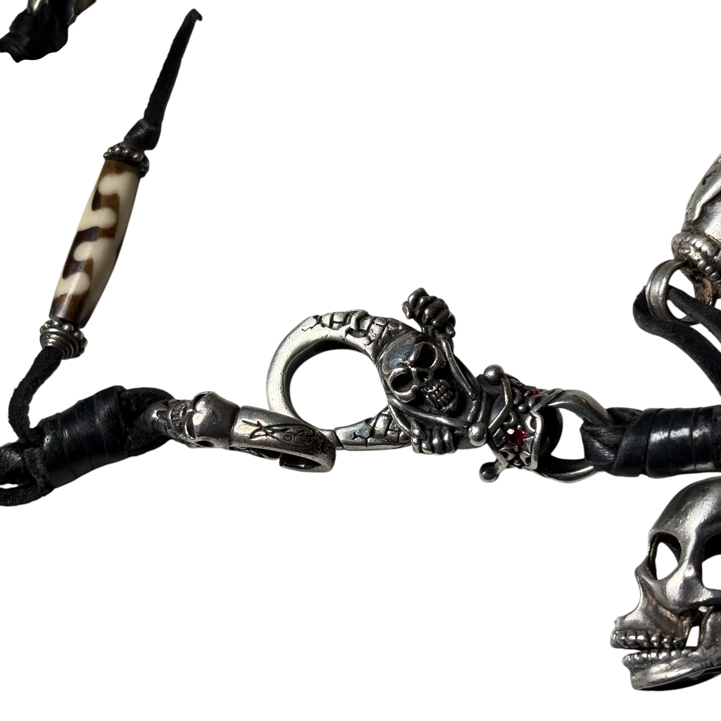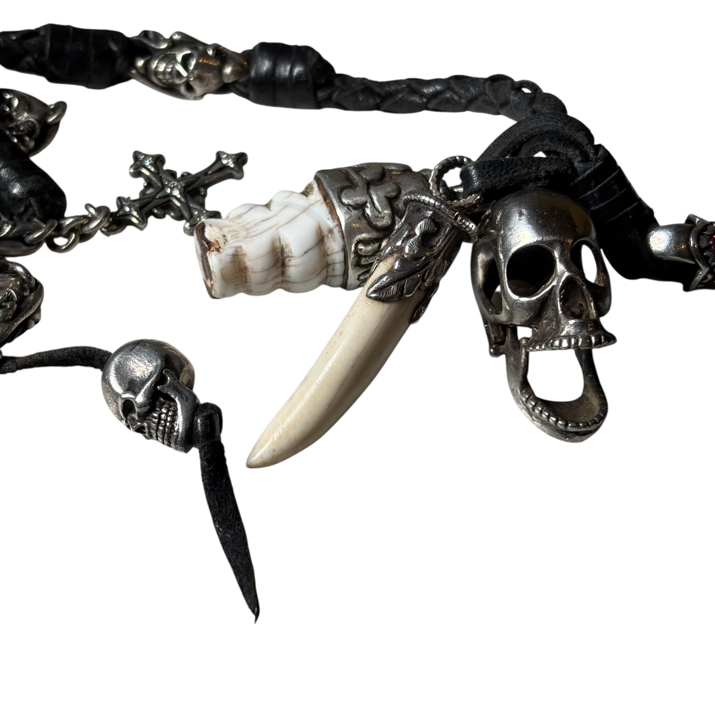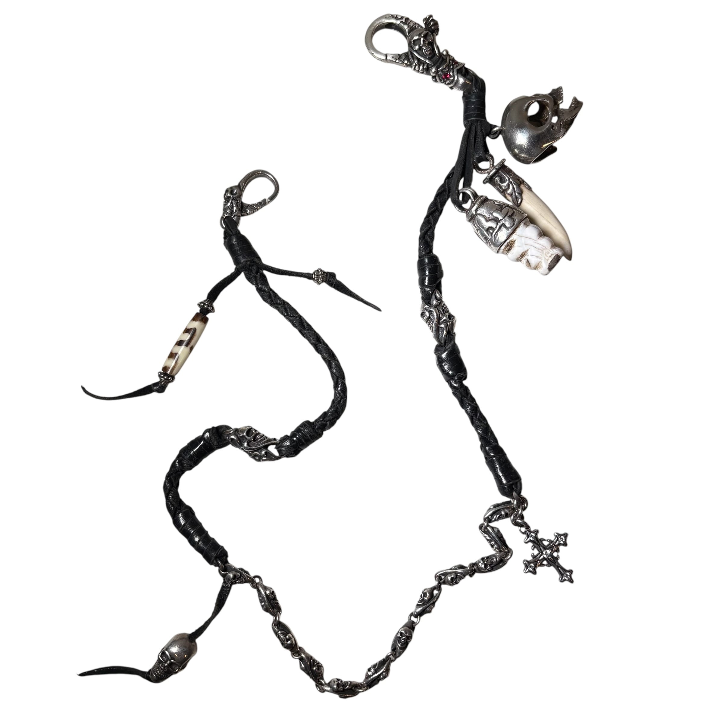 スカルモチーフや天然の牙を使用。