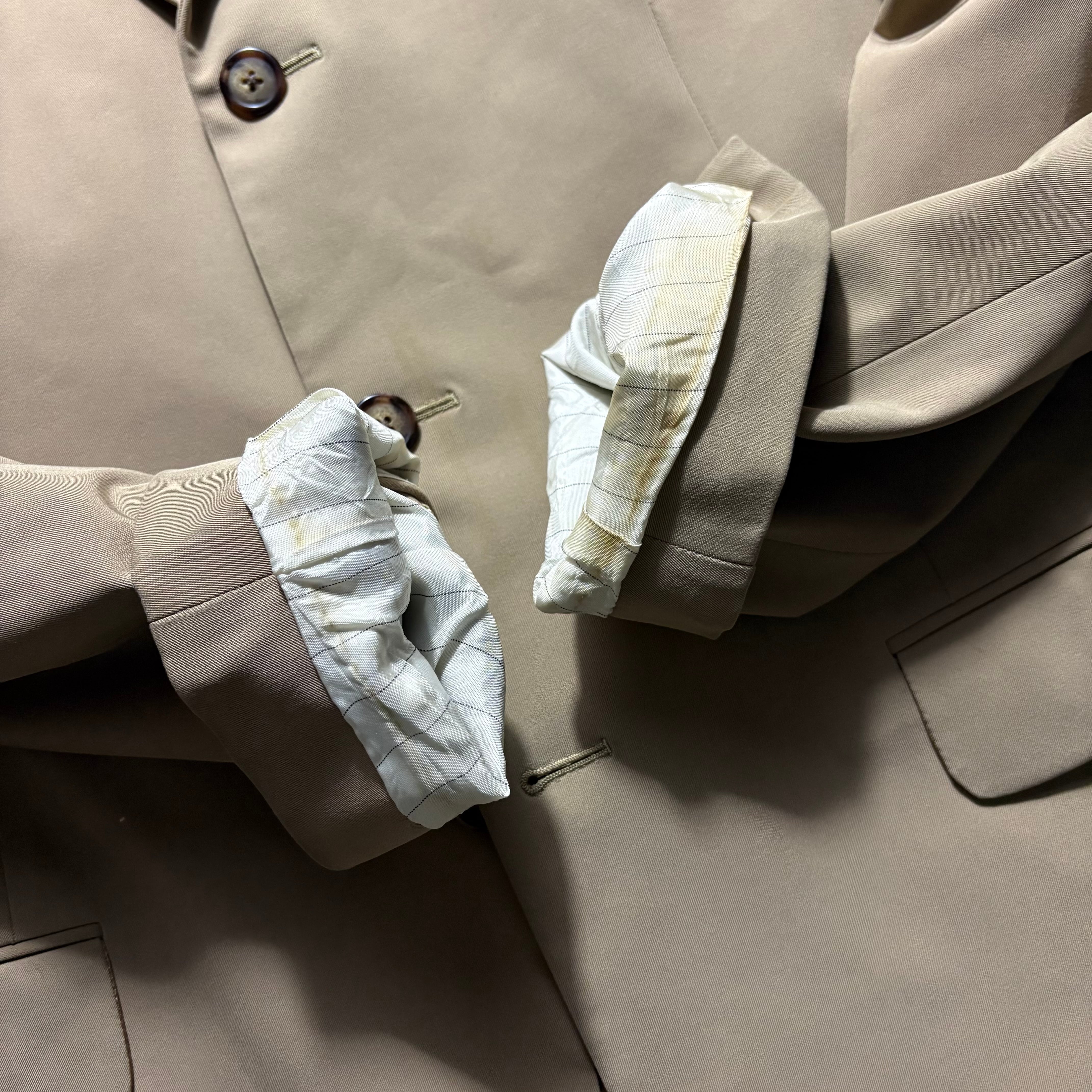 size : 表記50 実寸(肩幅48.5cm 身幅55cm 着丈78cm 袖丈67cm) (ウエスト43cm 股上28cm 股下79cm ワタリ31cm 裾幅19cm)