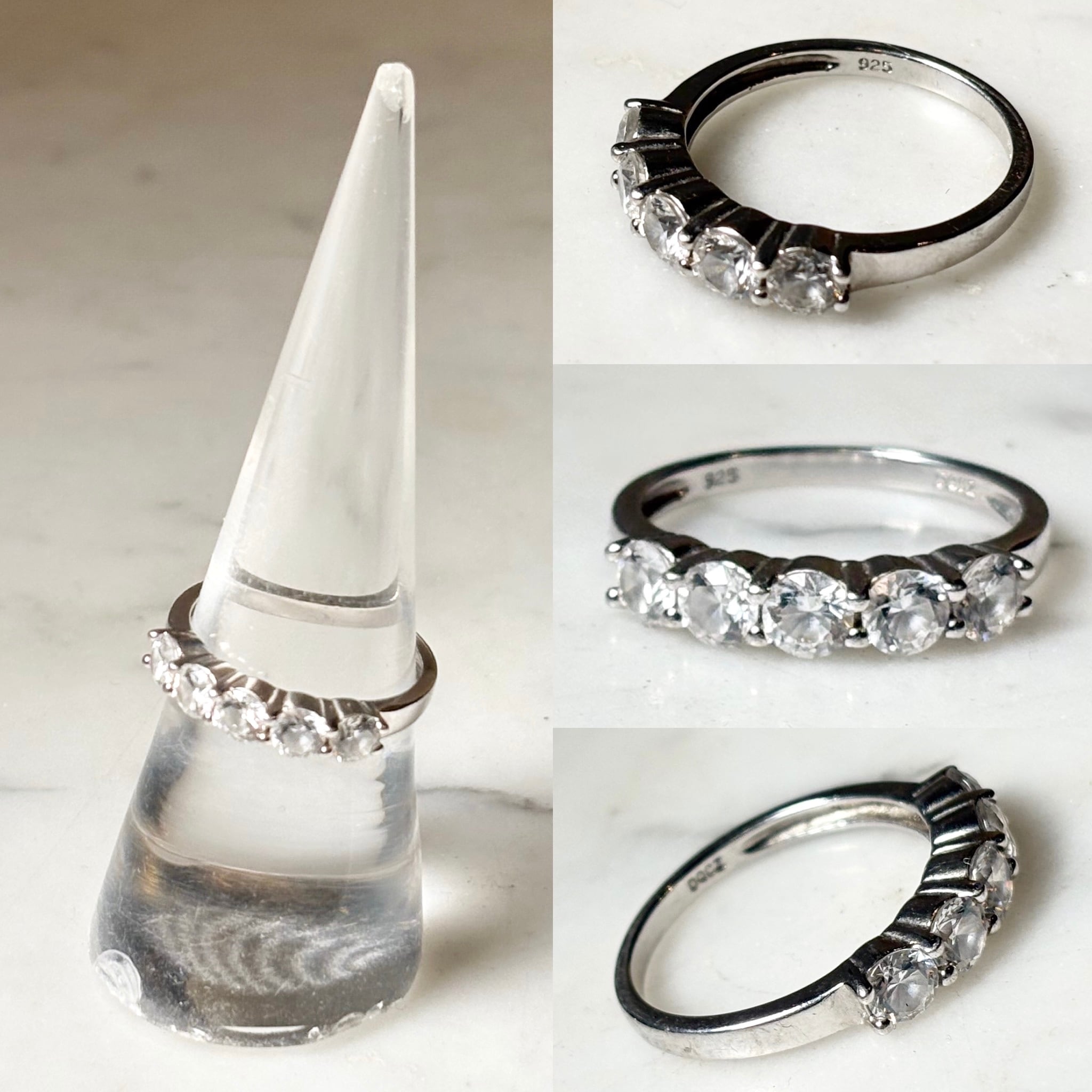 vintage silver clear stone ring