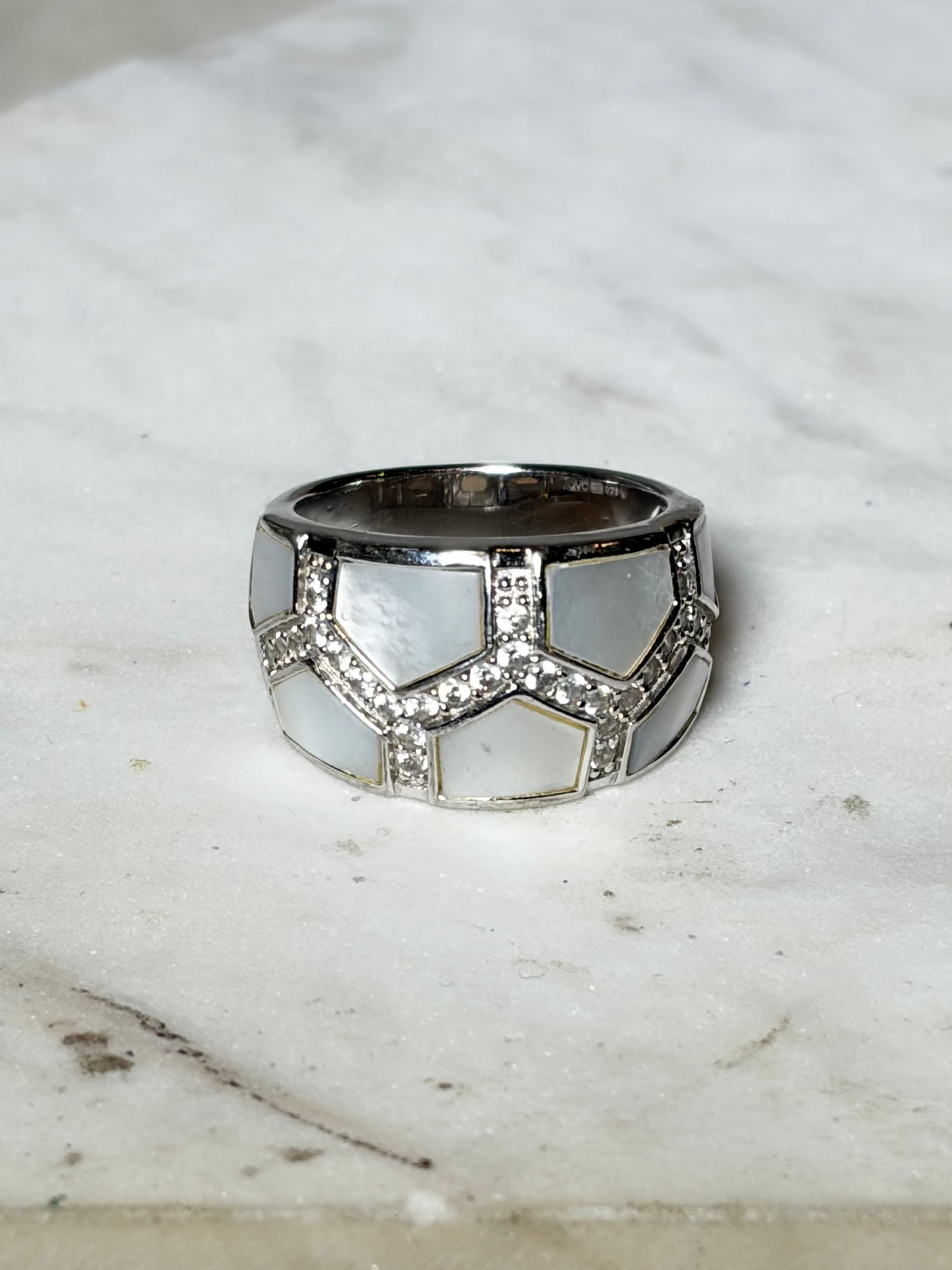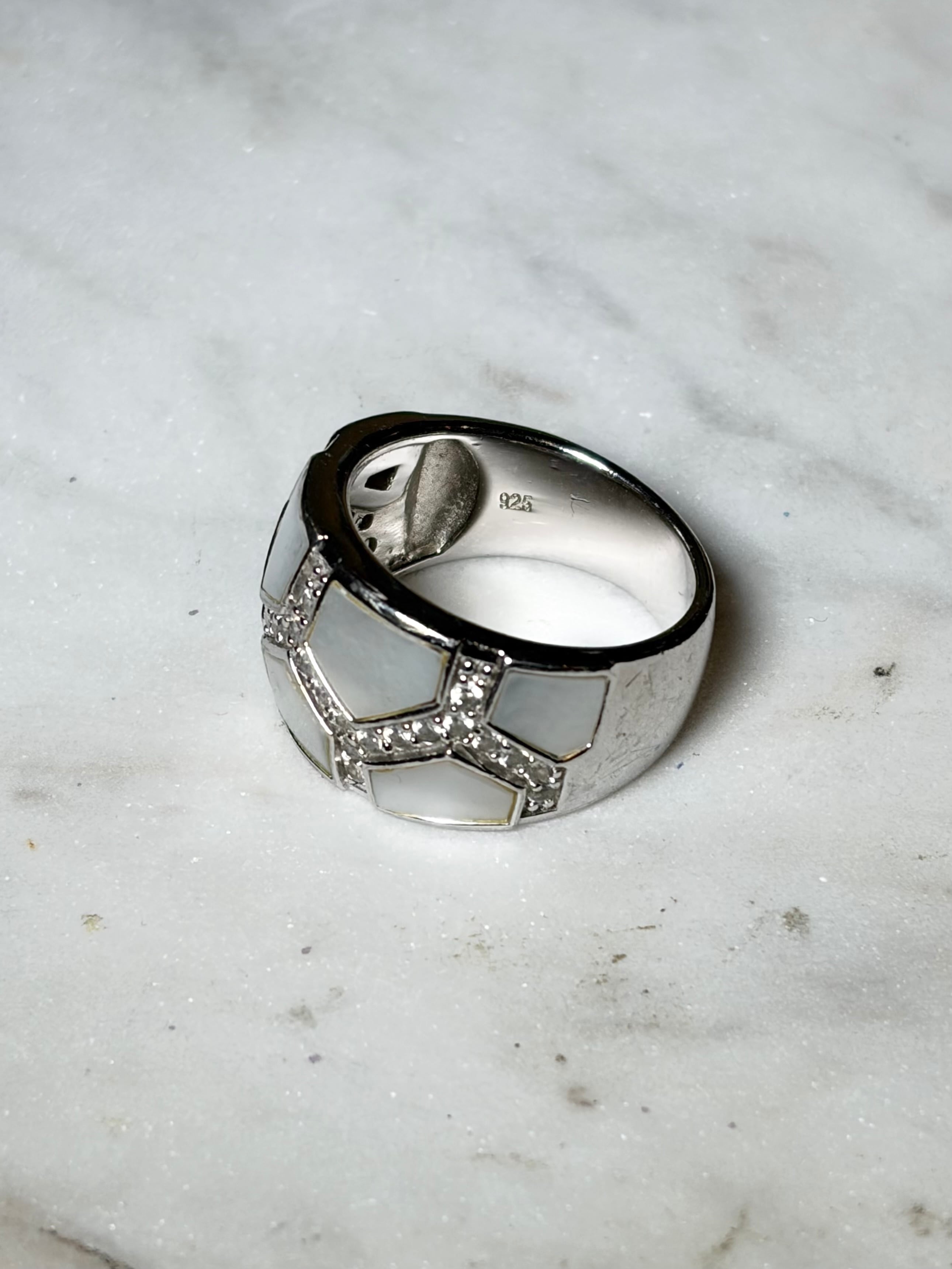 vintage silver shell & paste ring