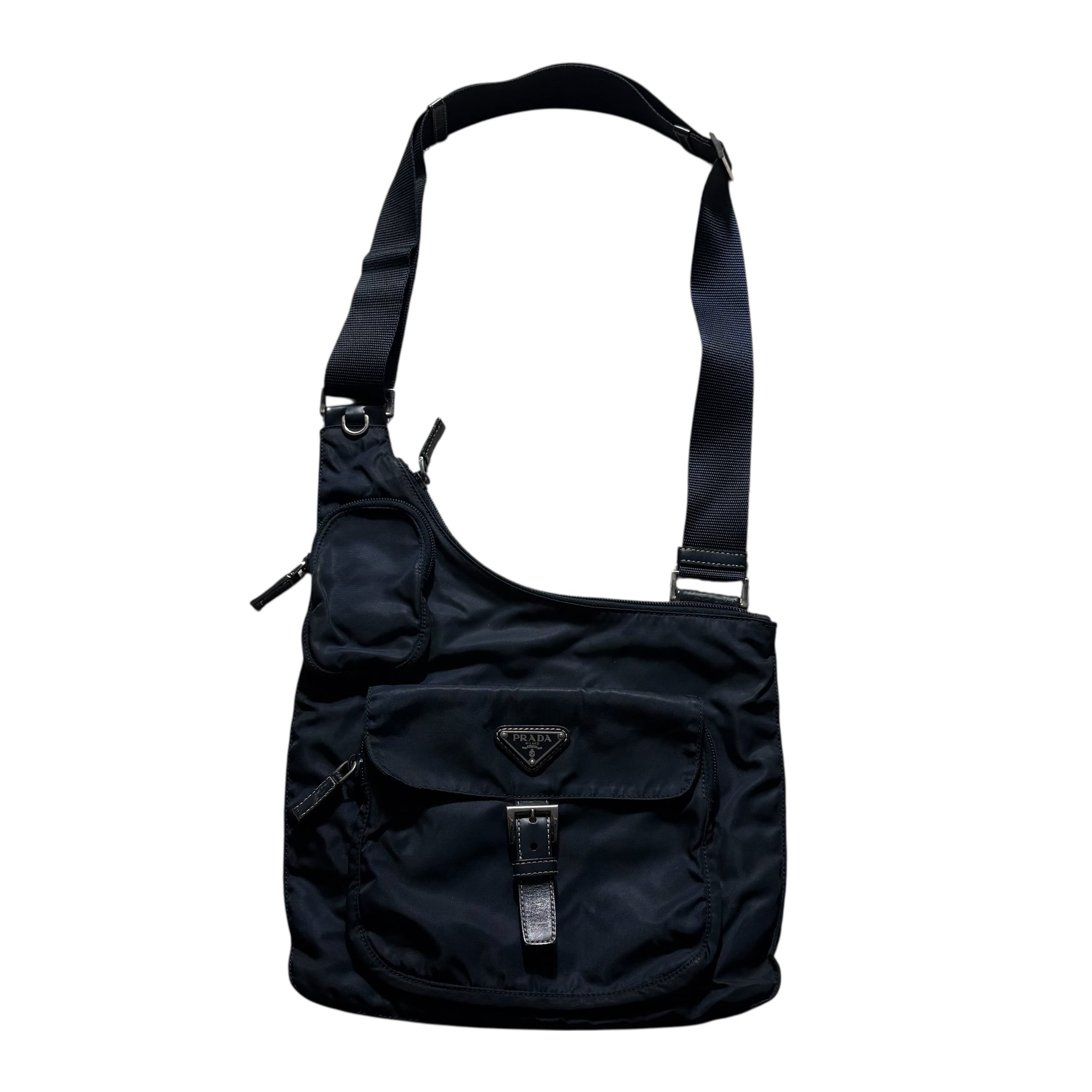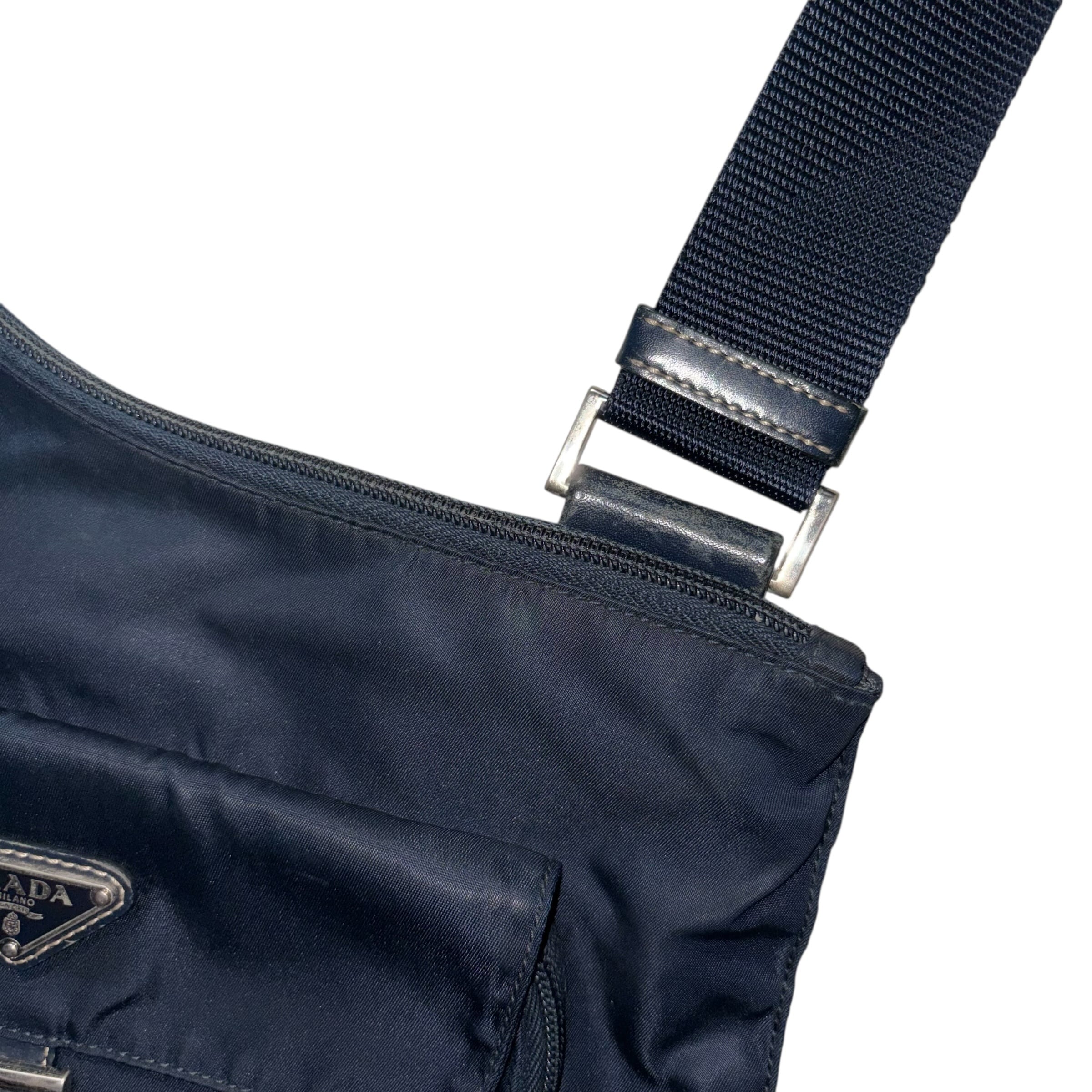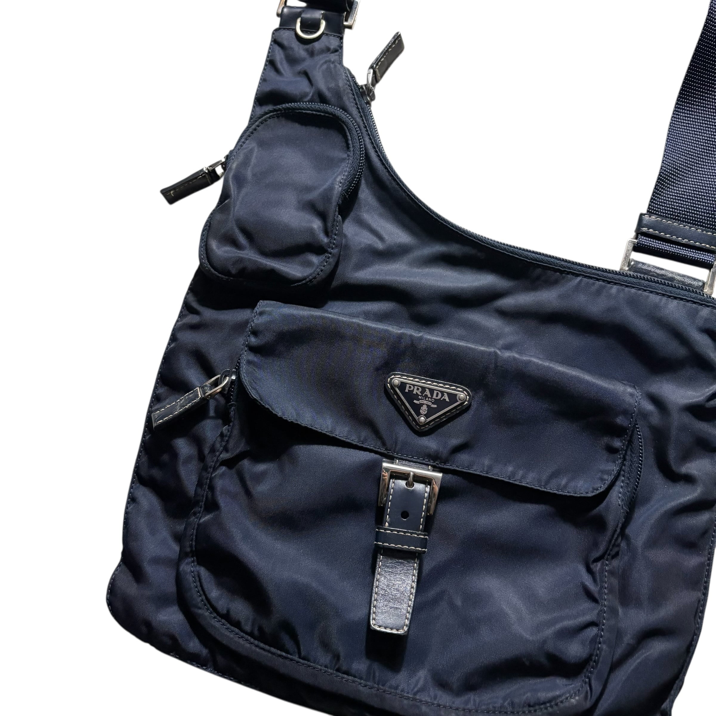 archive PRADA navy nylon multi pocket shoulder bag