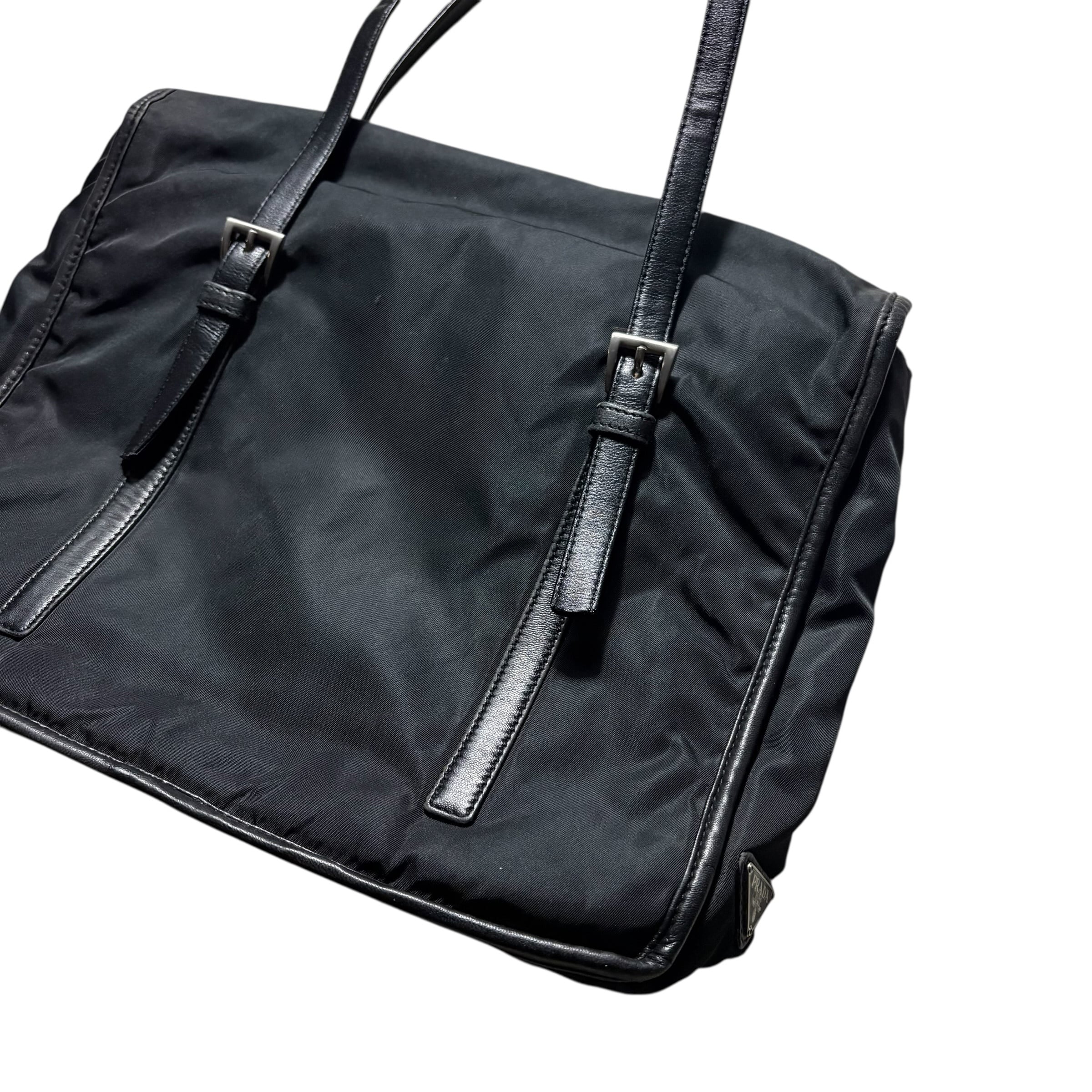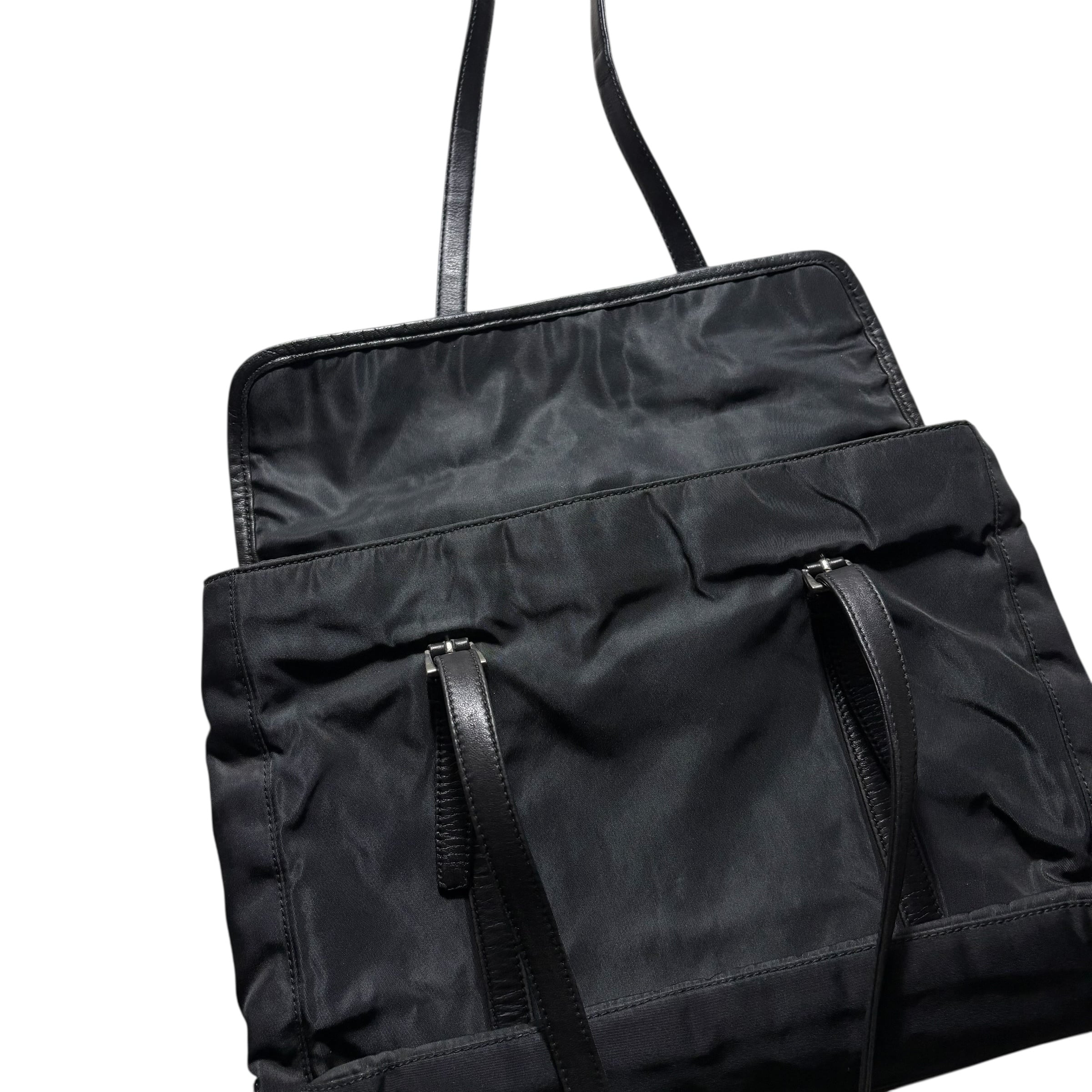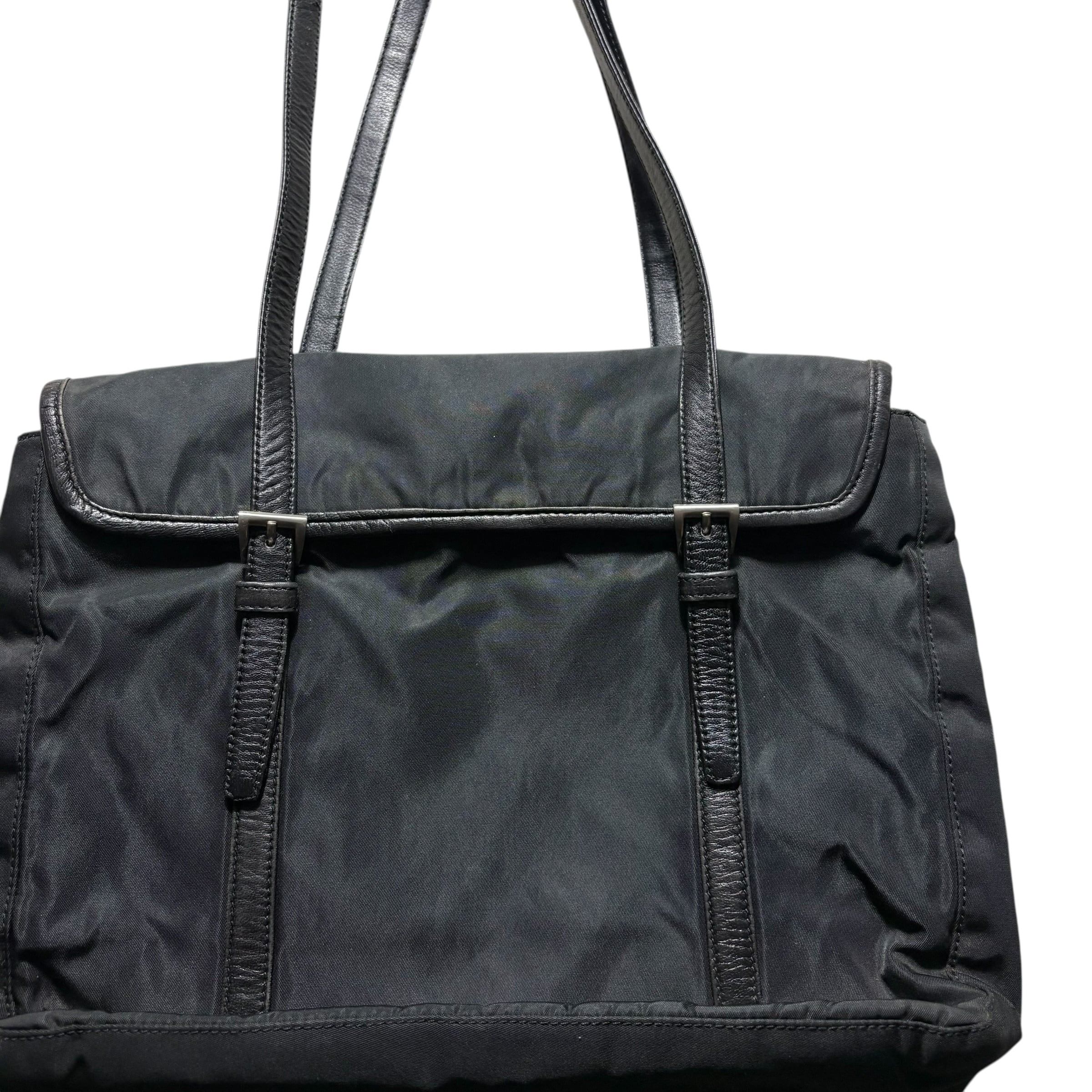 PRADA leather piping black nylon flap tote bag