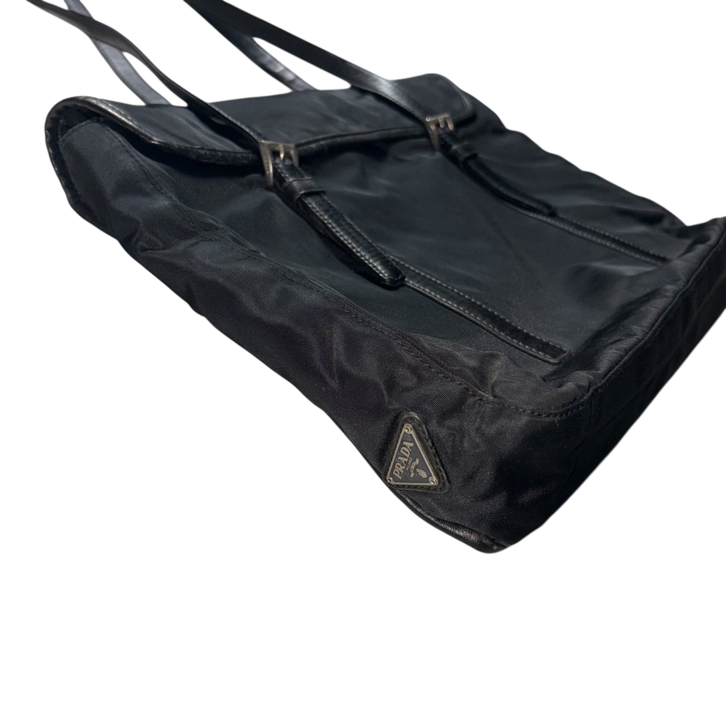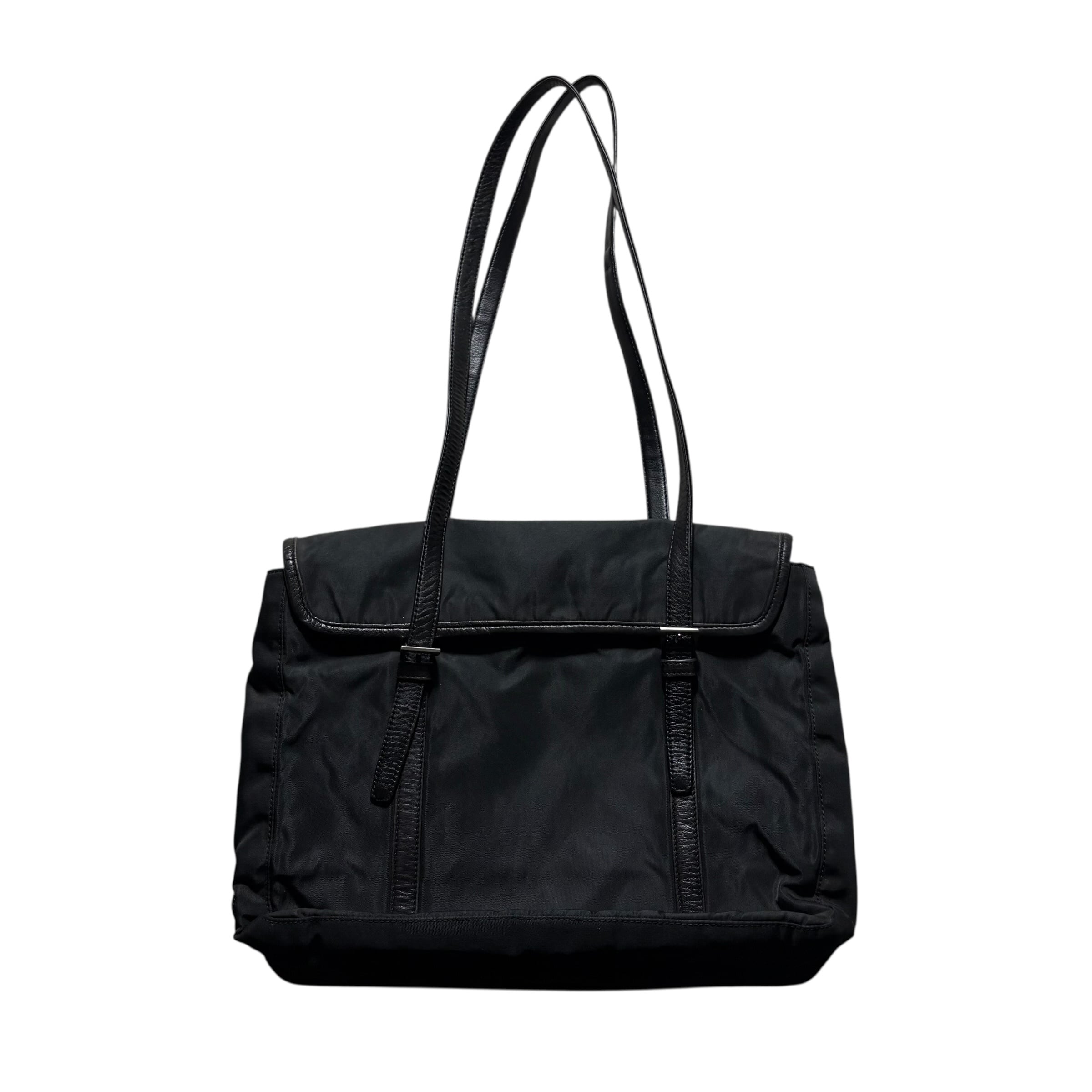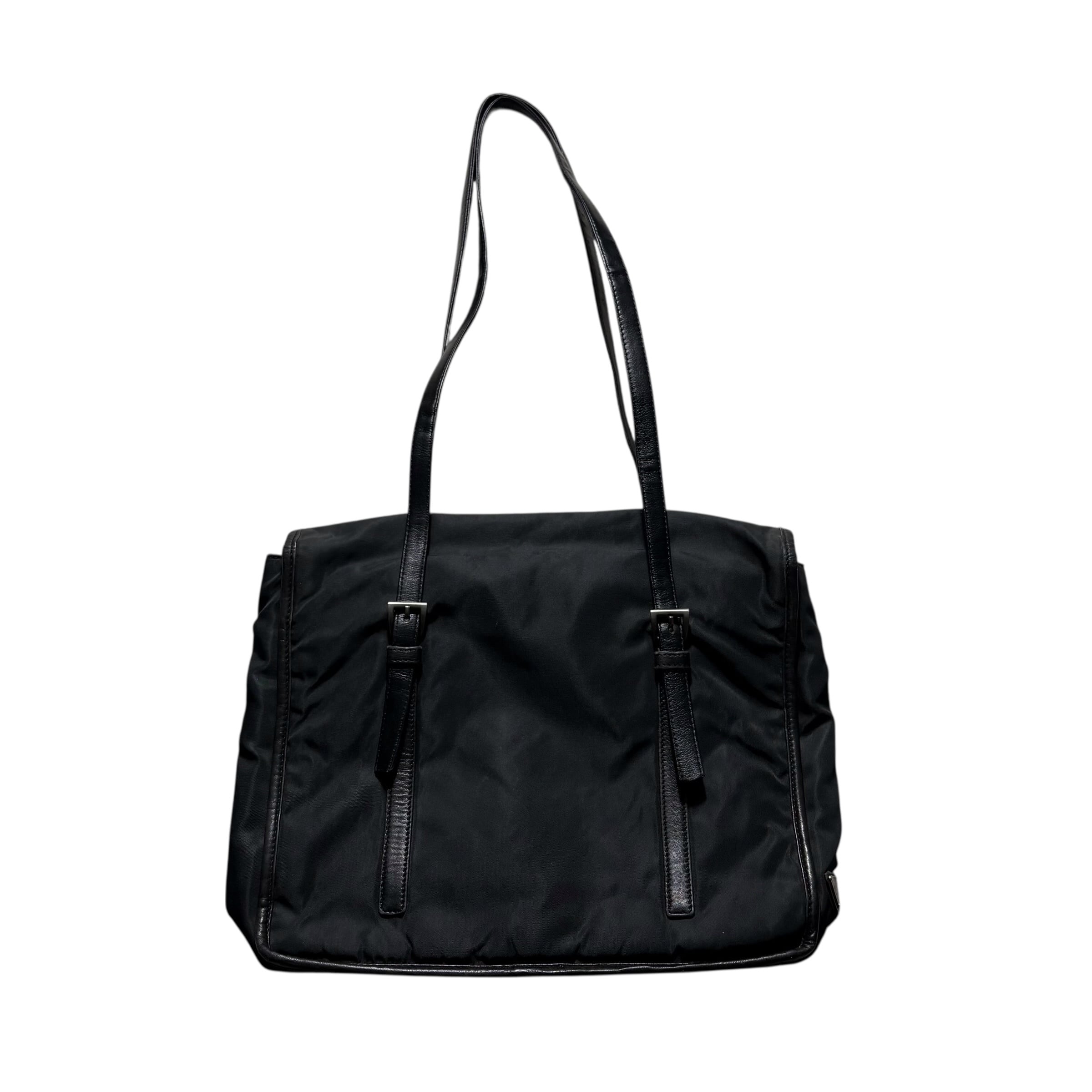 PRADA leather piping black nylon flap tote bag