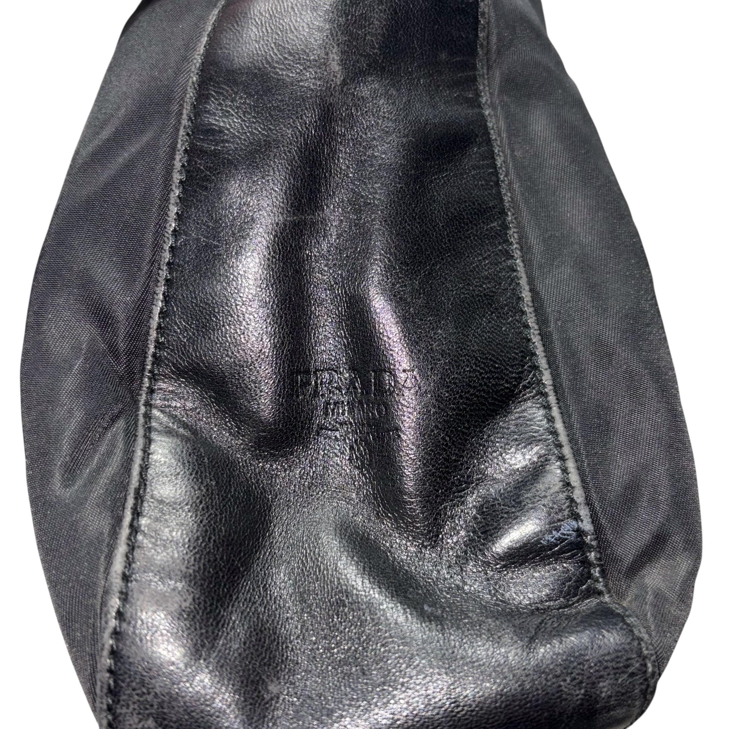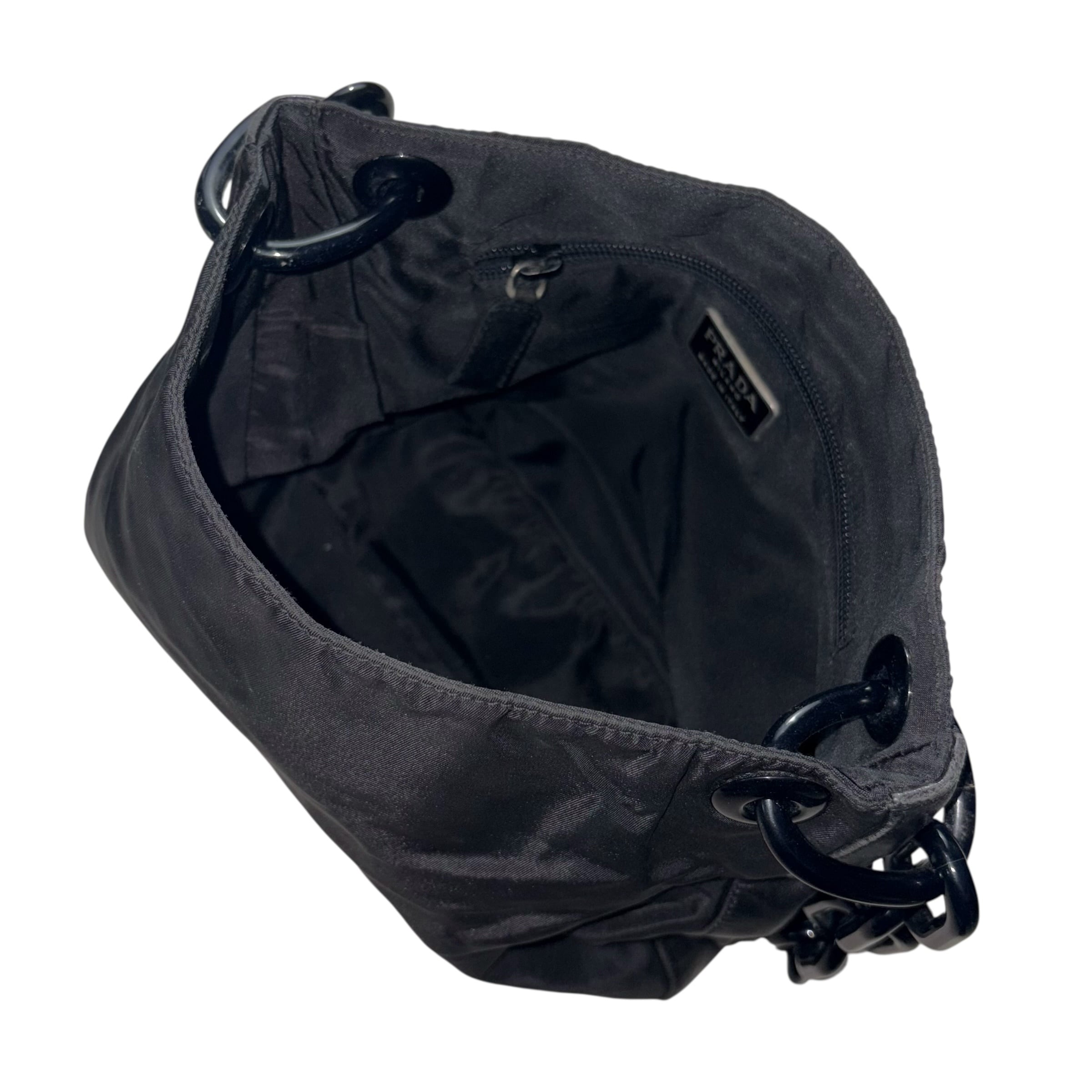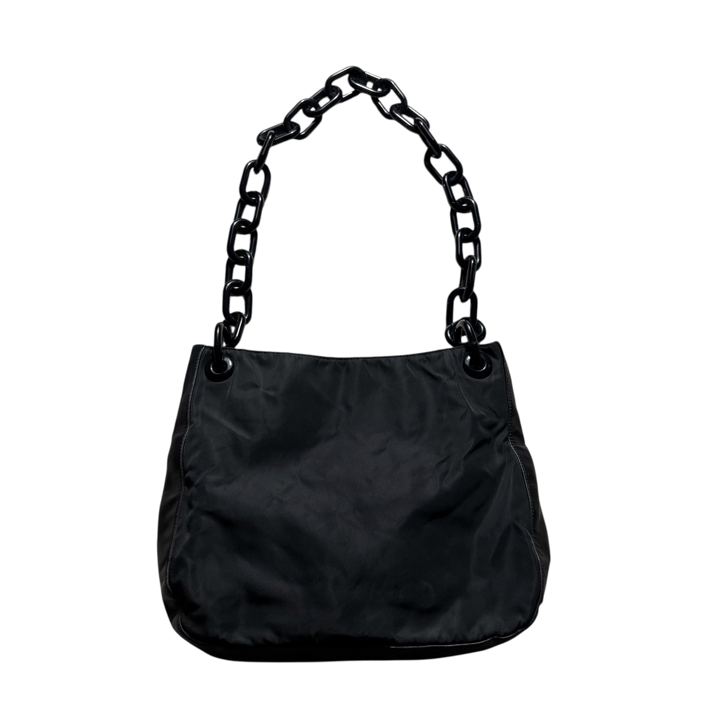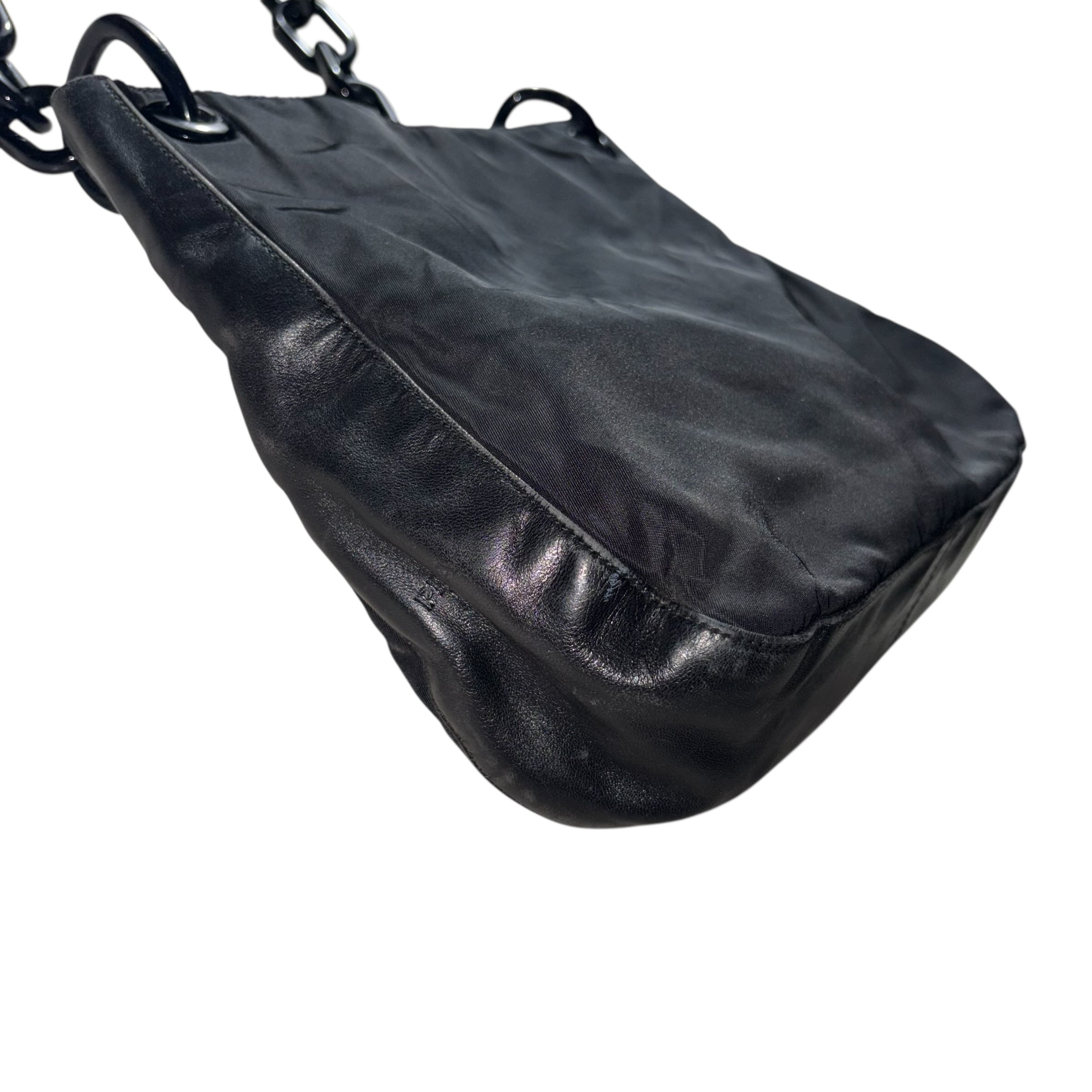 PRADA leather switching black nylon plastic chain bag
