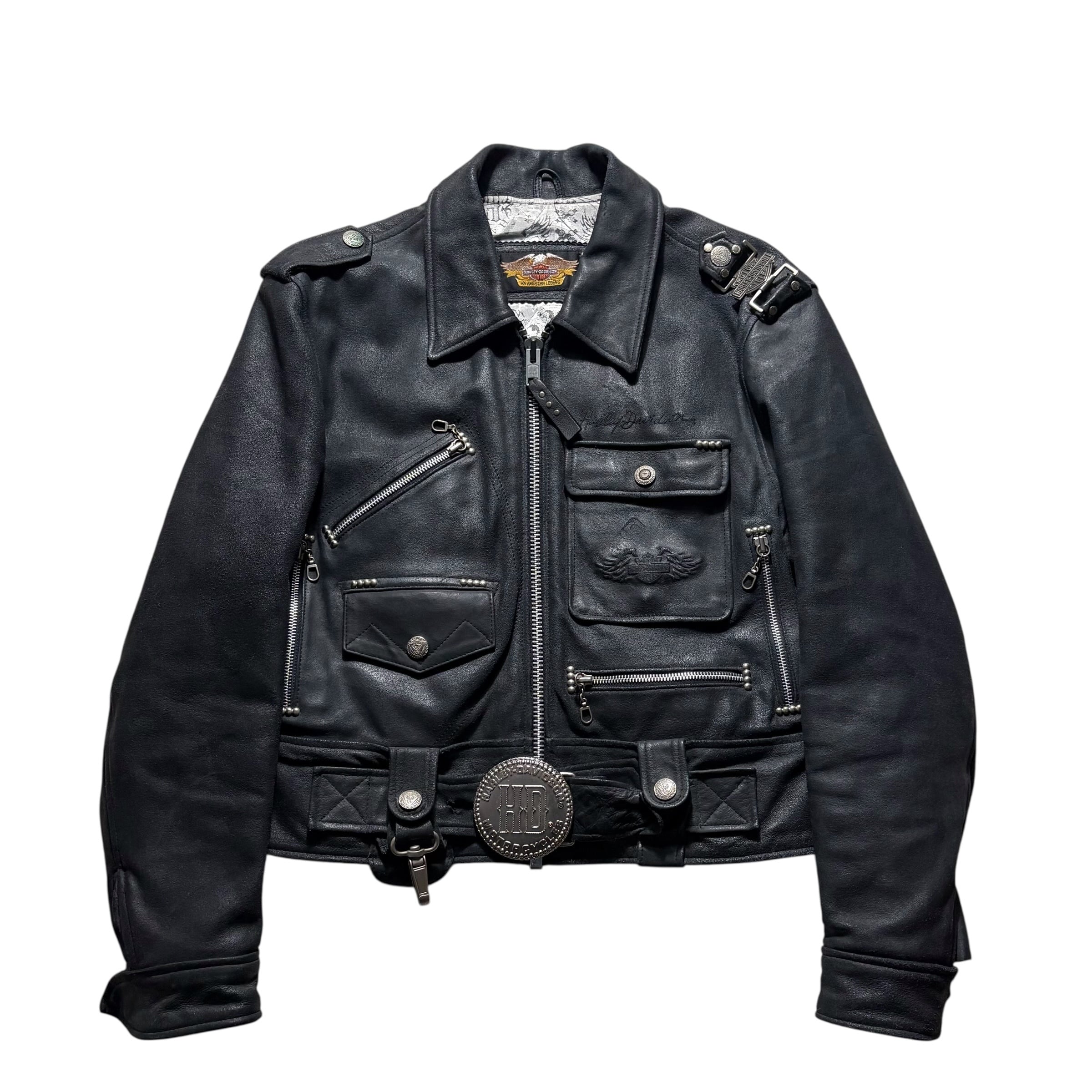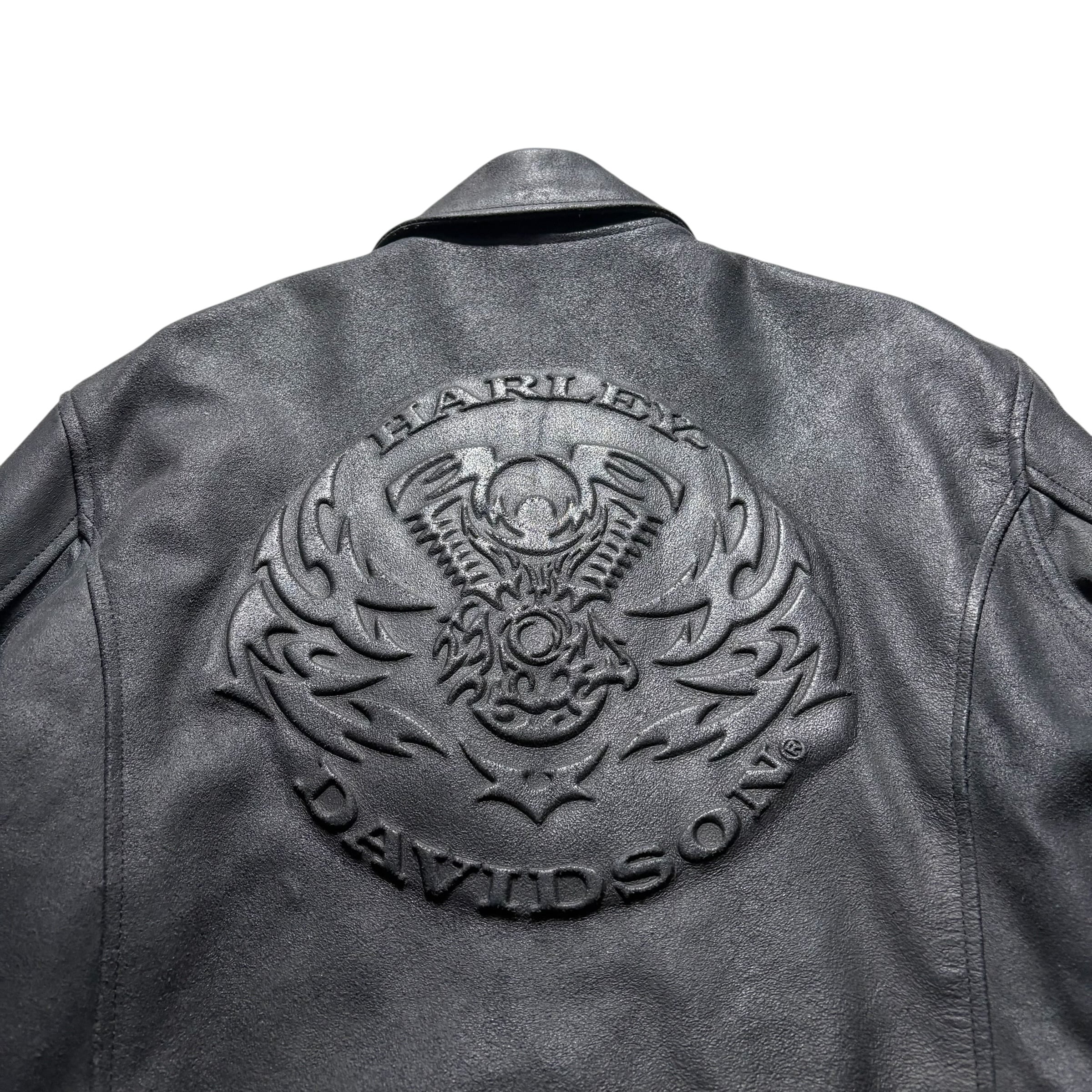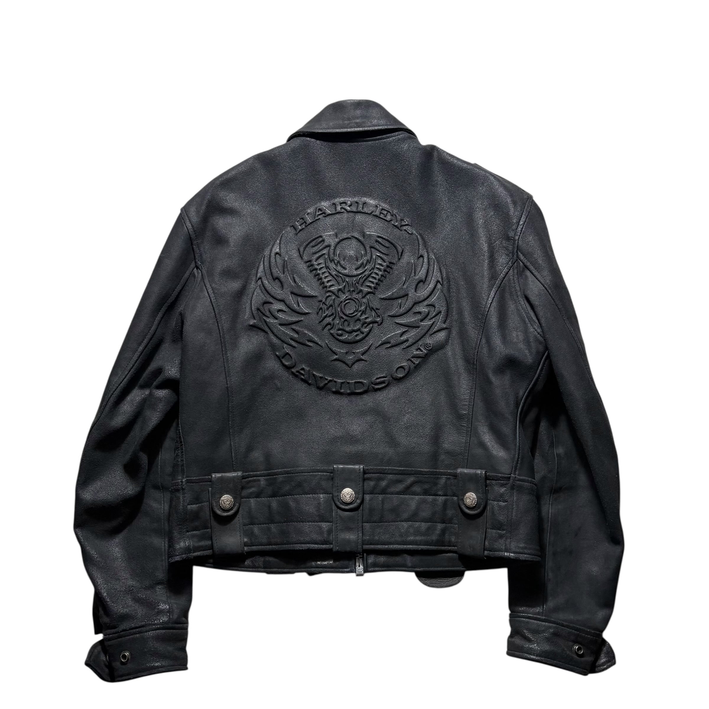 HARLEY-DAVIDSON black crack leather riders jacket