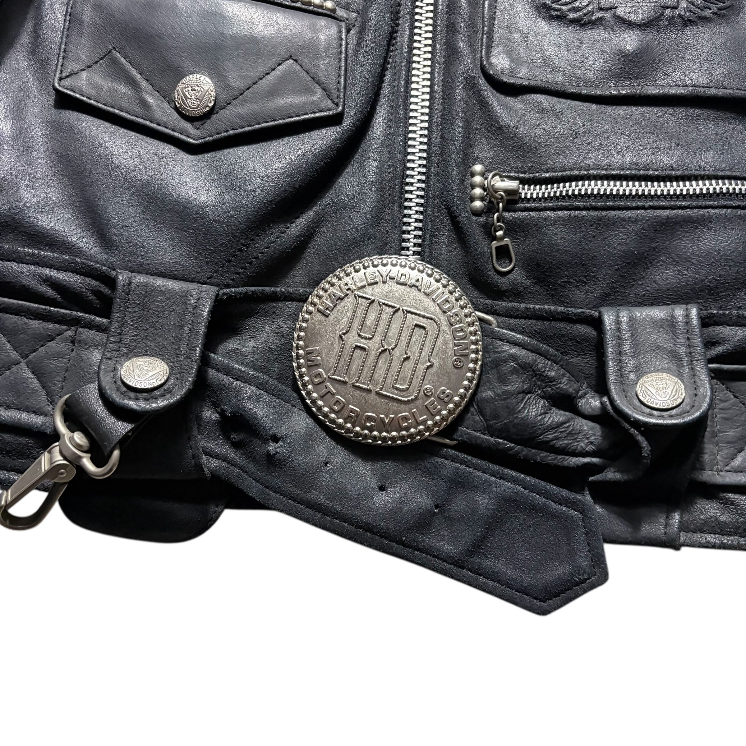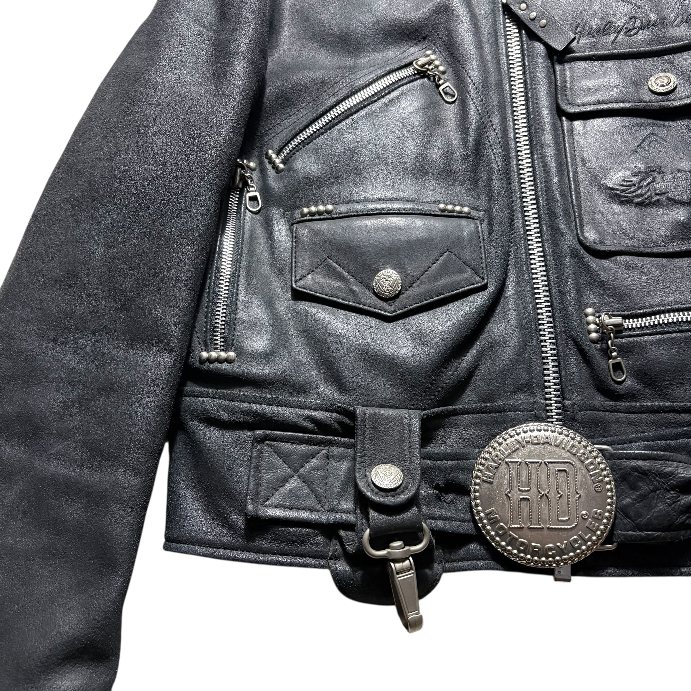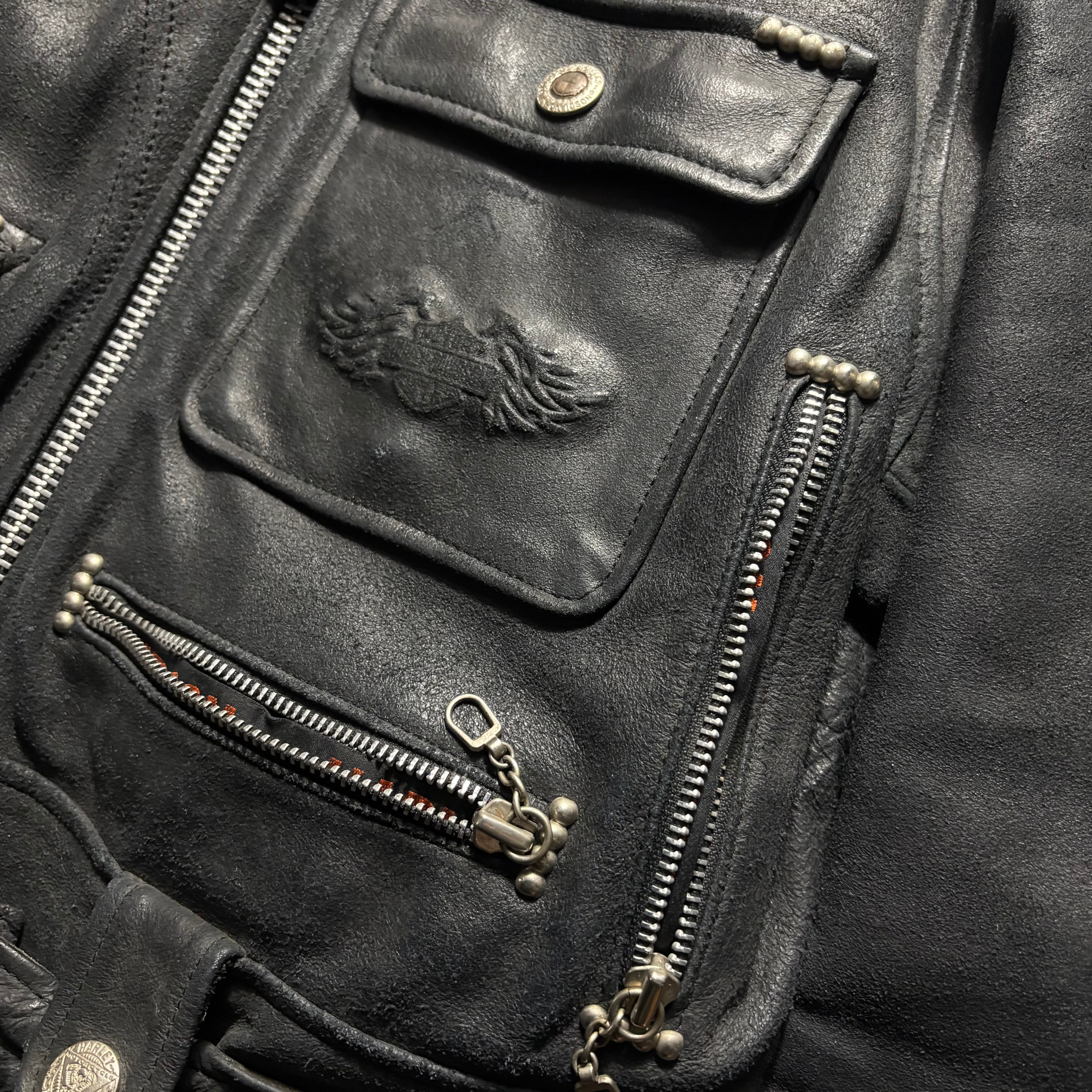 HARLEY-DAVIDSON black crack leather riders jacket