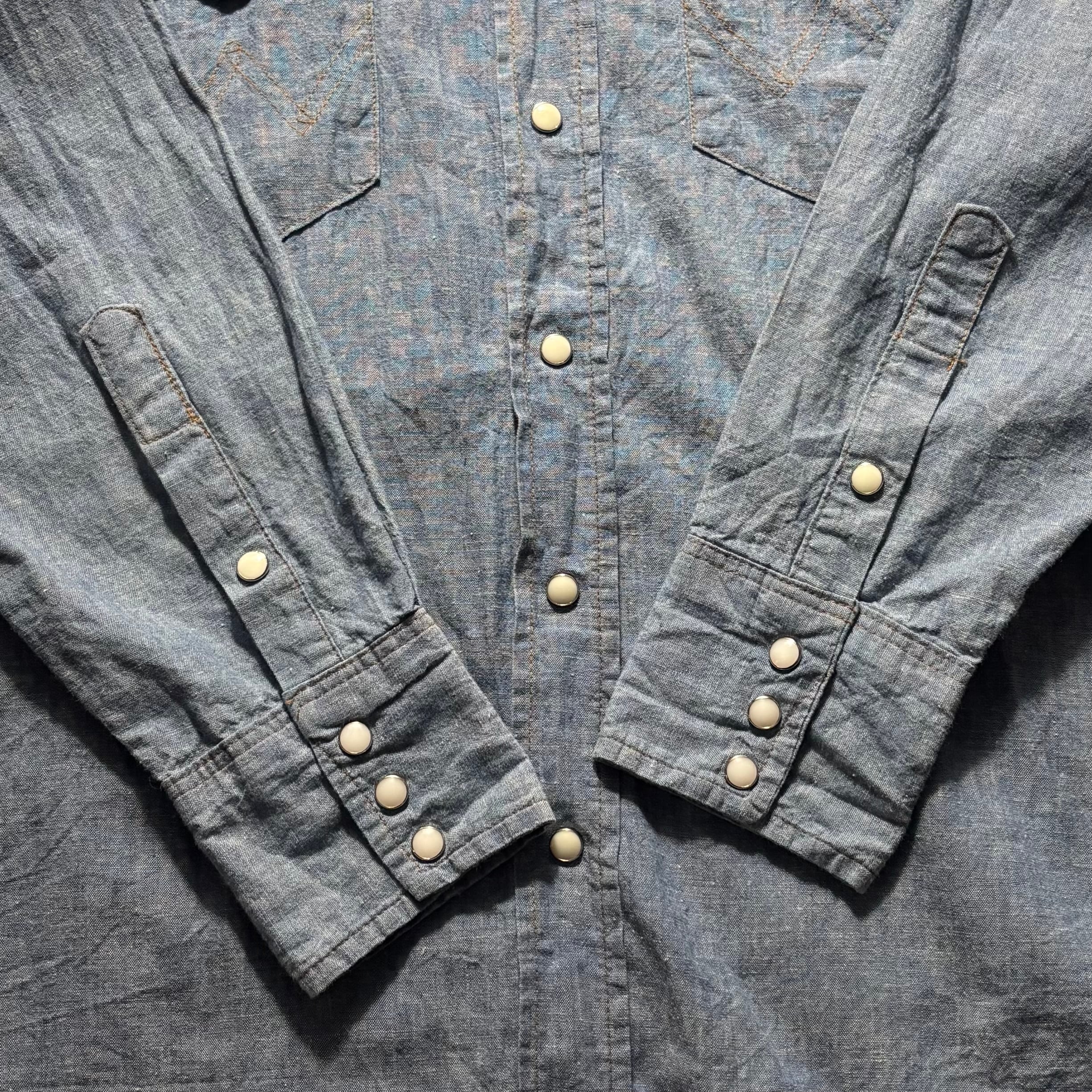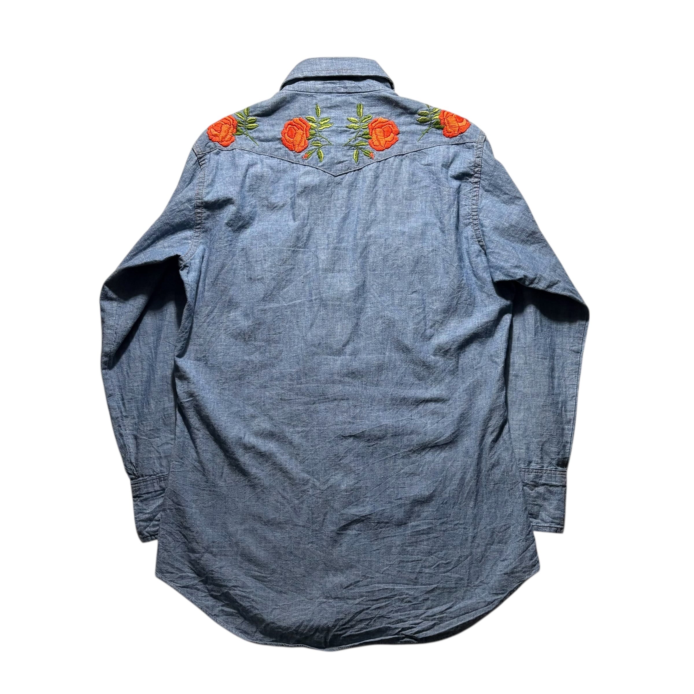 花刺繍のウエスタンシャンブレーシャツ。